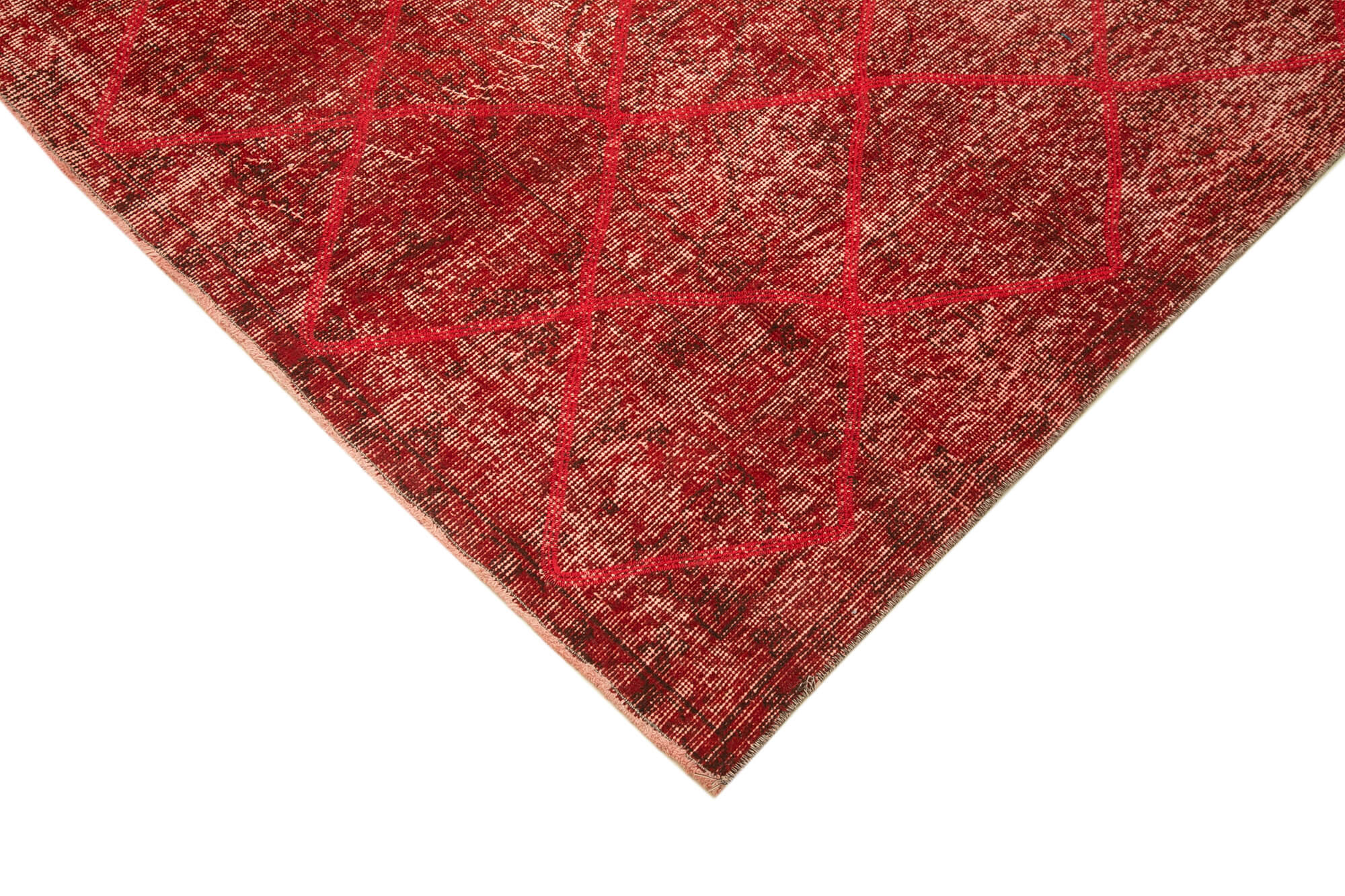 Geometric Carpet Red Geometric Cotton Wool Handmade Area Rug 6'10'' x 10'9''