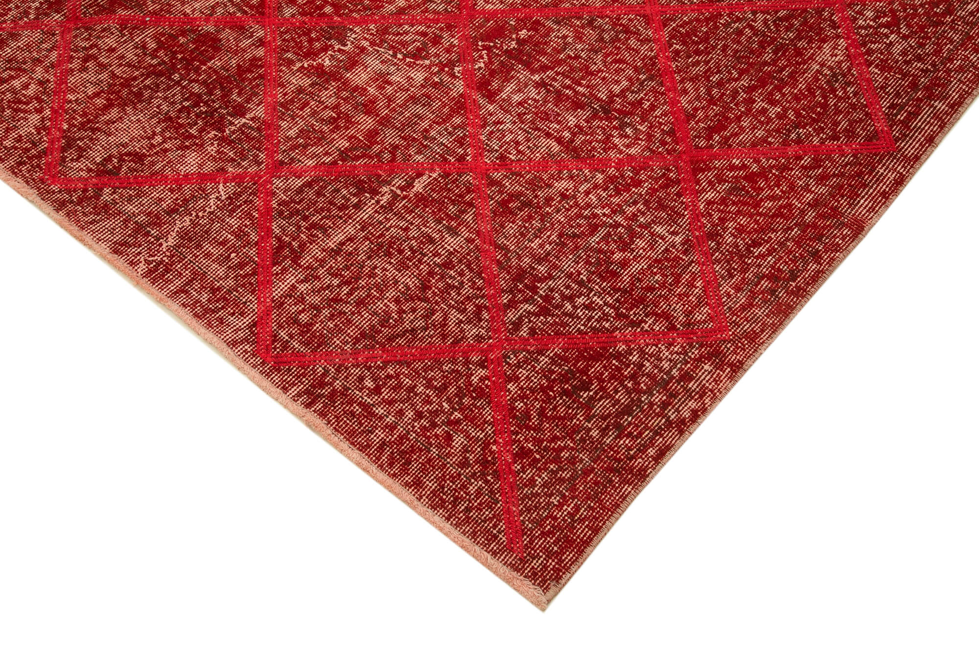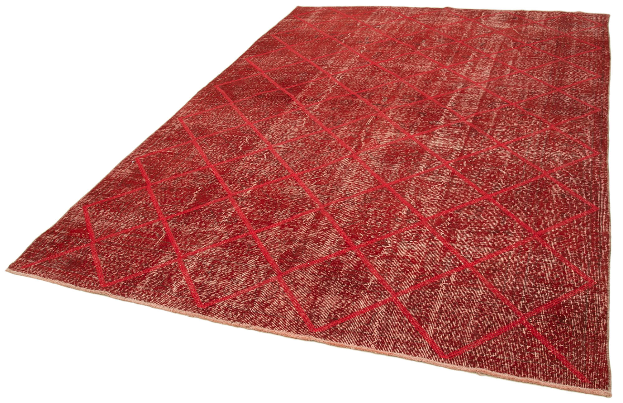 Geometric Carpet Red Geometric Cotton Wool Handmade Area Rug 6'11'' x 10'1''