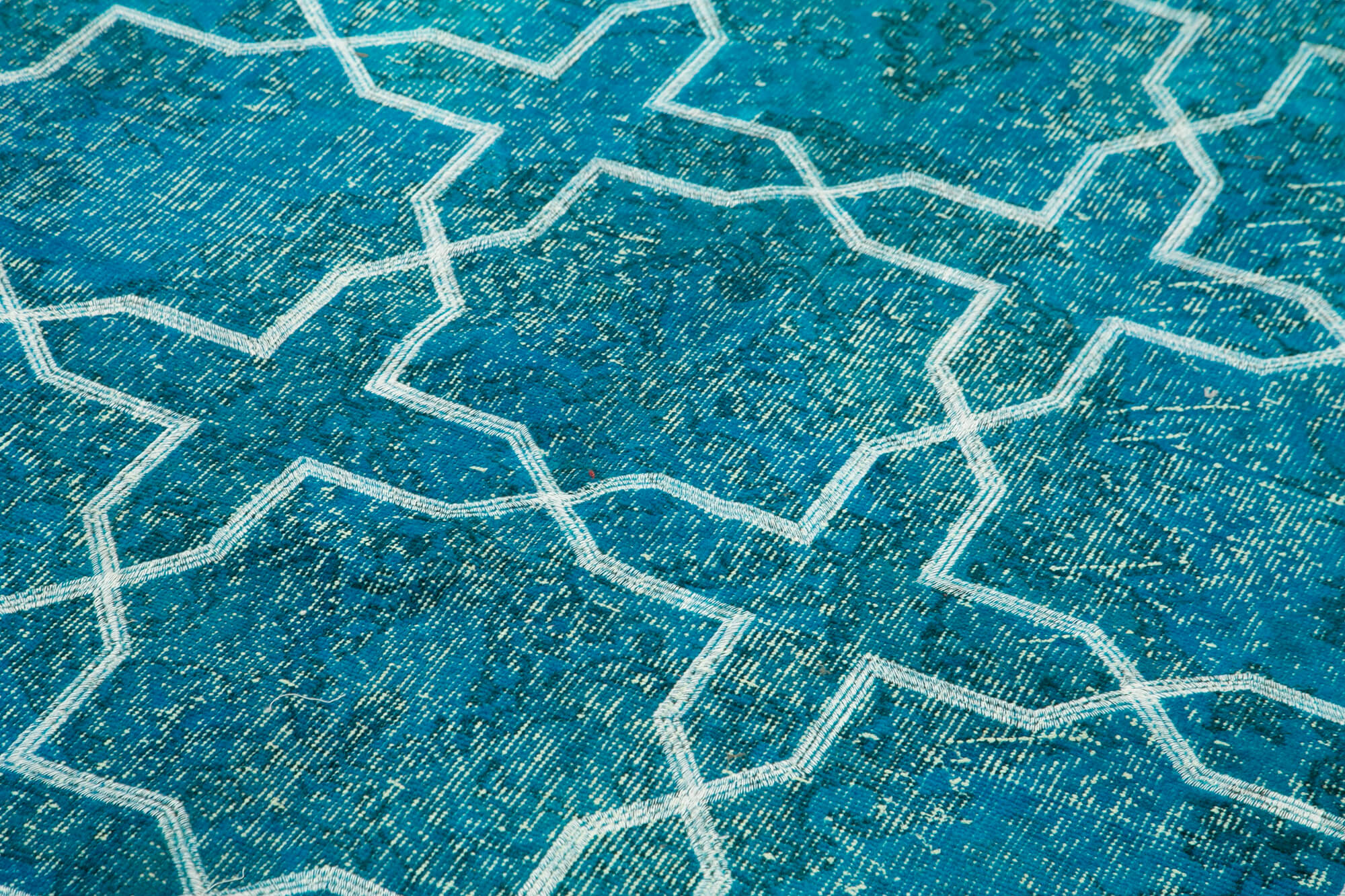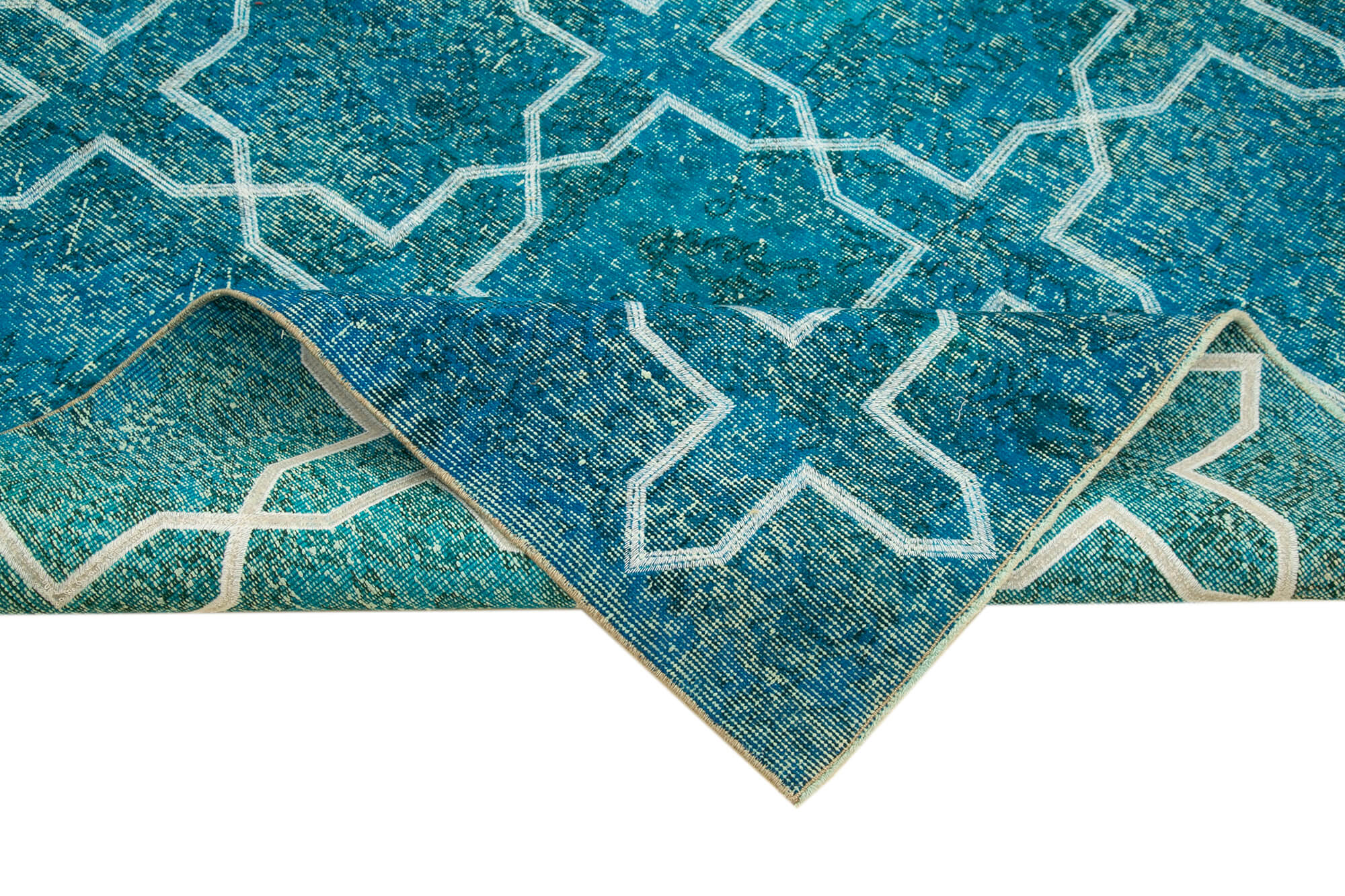 Geometric Carpet Turquoise Geometric Cotton Wool Handmade Area Rug 5'6'' x 9'3''