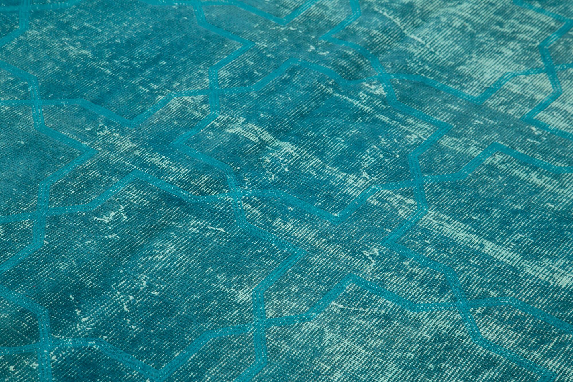 Geometric Carpet Turquoise Geometric Cotton Wool Handmade Area Rug 5'8'' x 8'8''