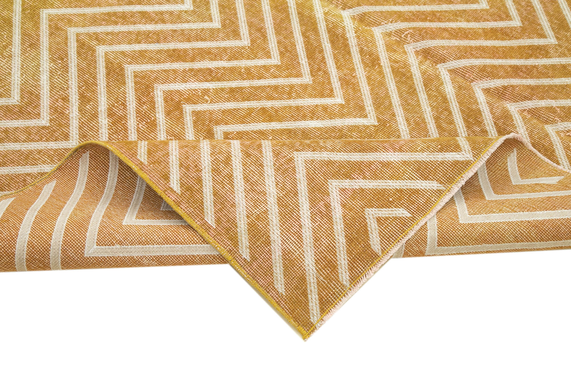 Geometric Carpet Yellow Geometric Cotton Wool Handmade Area Rug 6'8'' x 9'9''