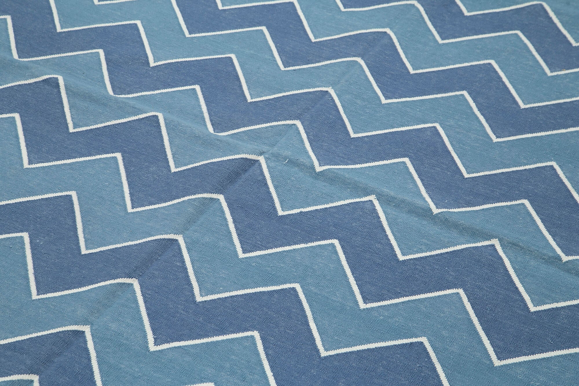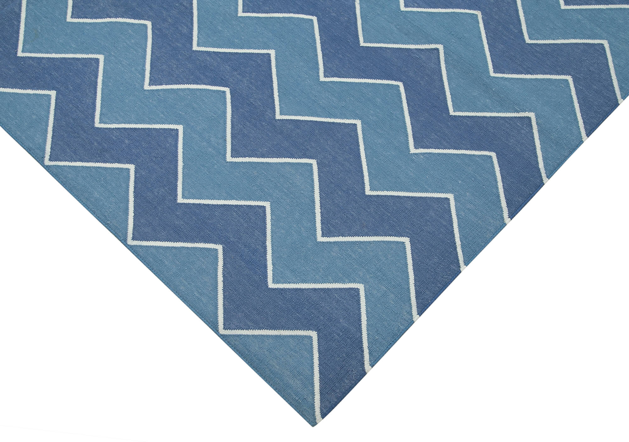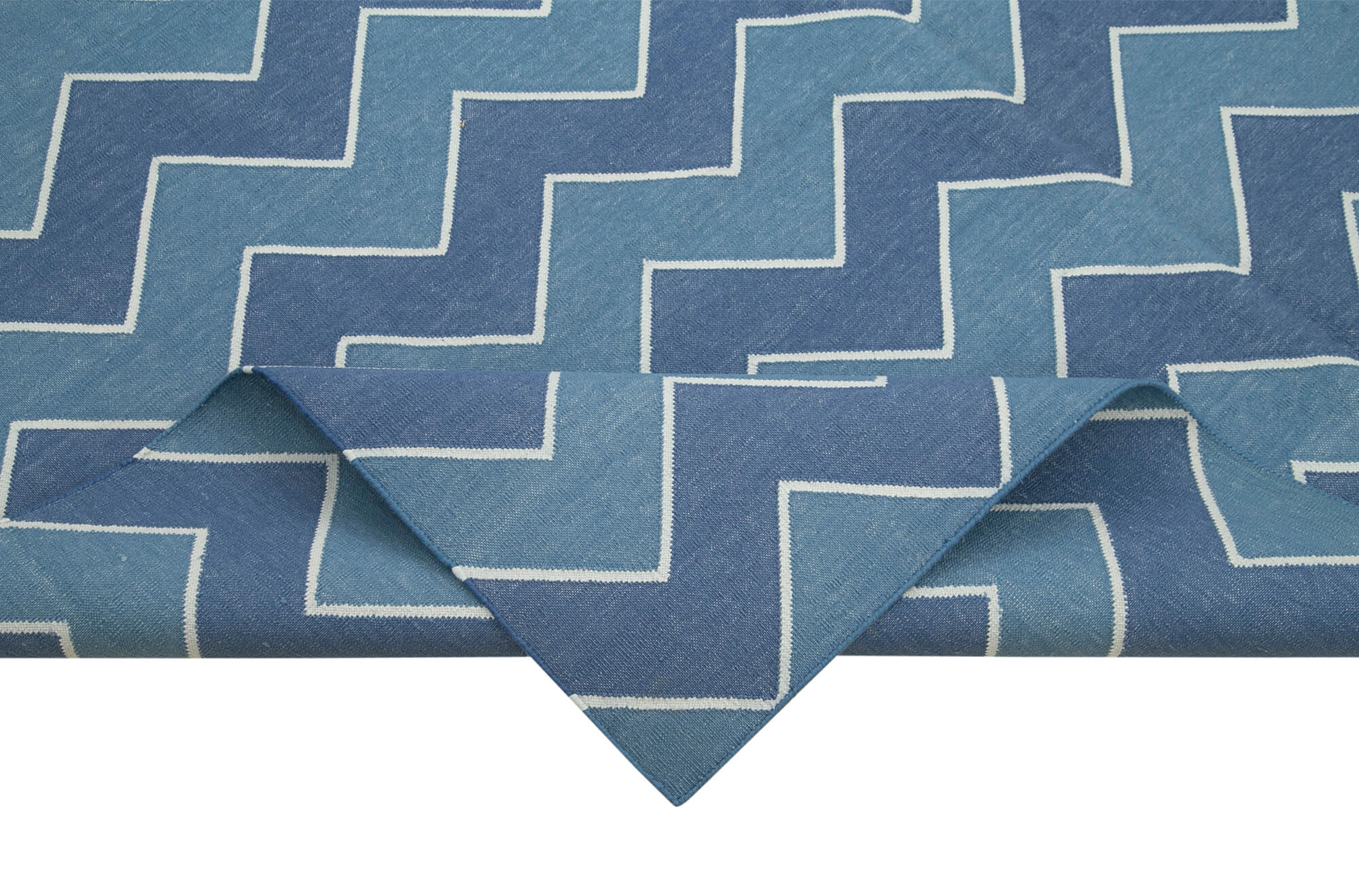 Geometric Duri Blue Geometric Cotton Wool Handmade Area Rug 6'2'' x 8'10''