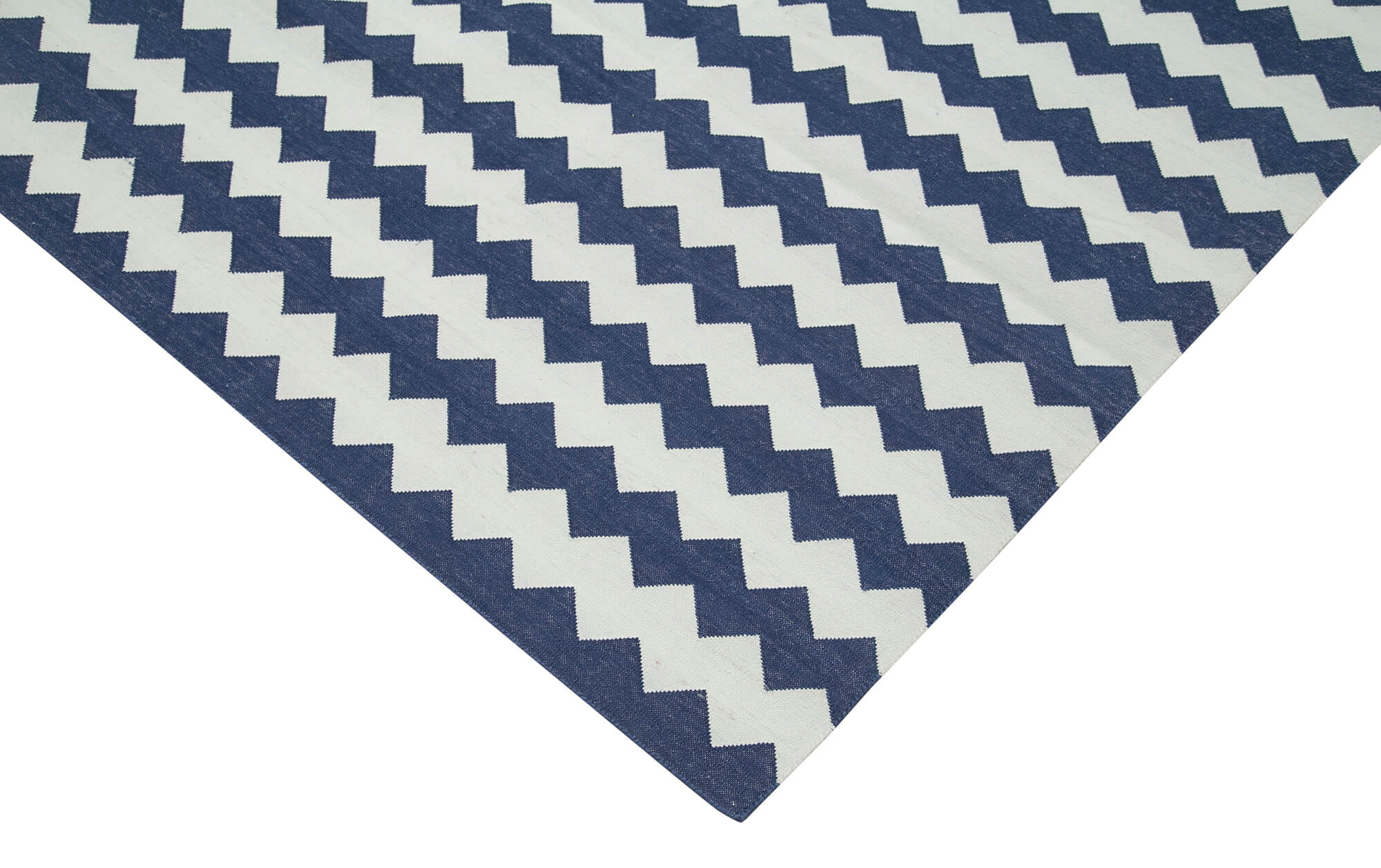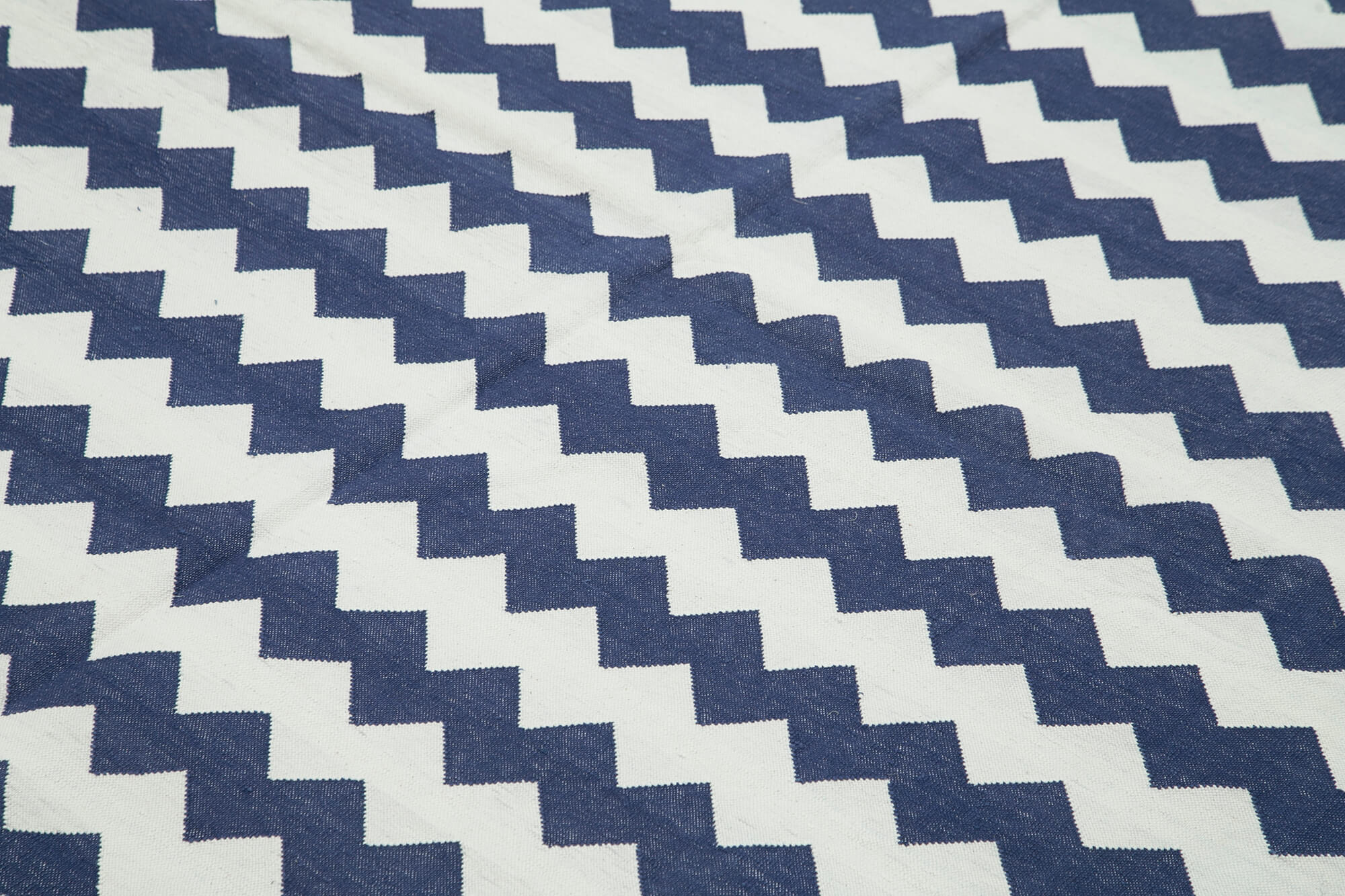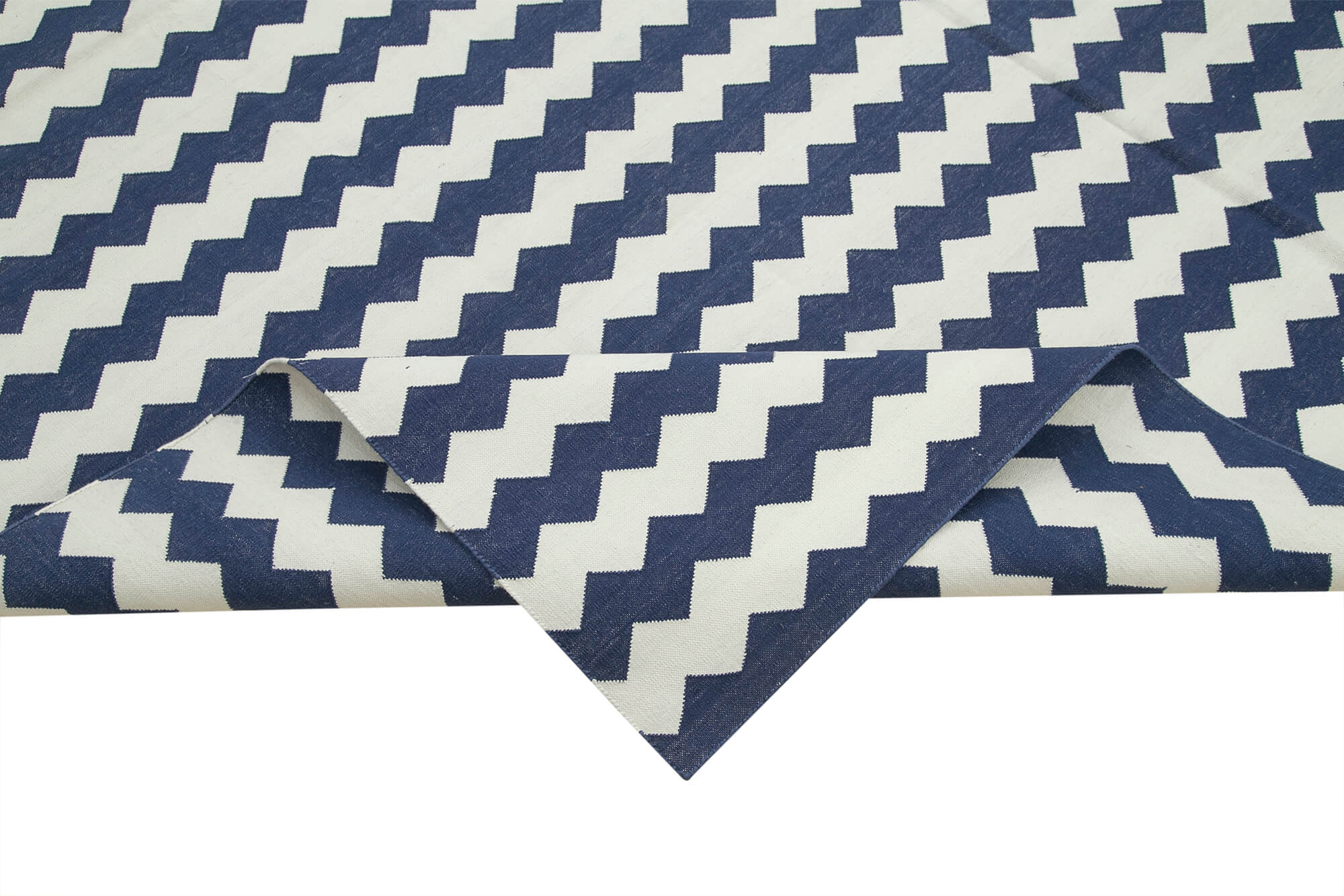 Geometric Duri Blue Geometric Cotton Wool Handmade Area Rug 7'10'' x 9'7''