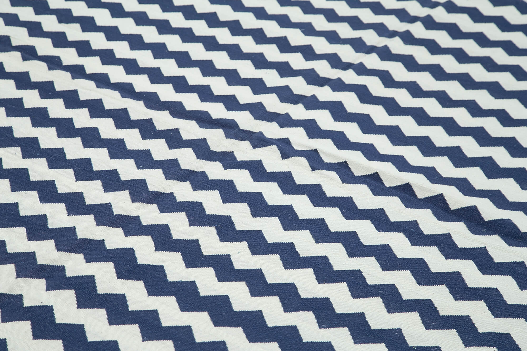 Geometric Duri Blue Geometric Cotton Wool Handmade Area Rug 8'11'' x 11'10''
