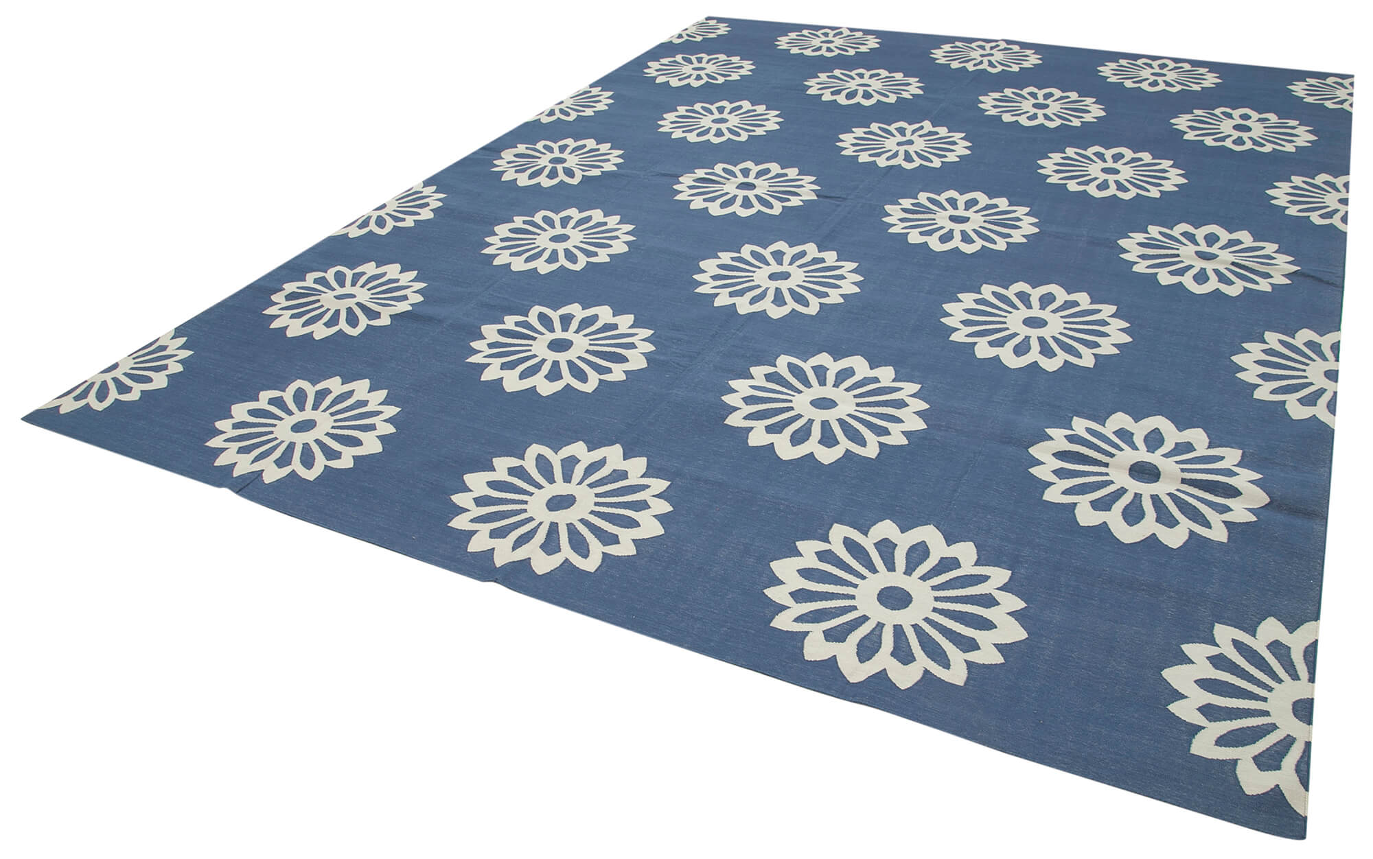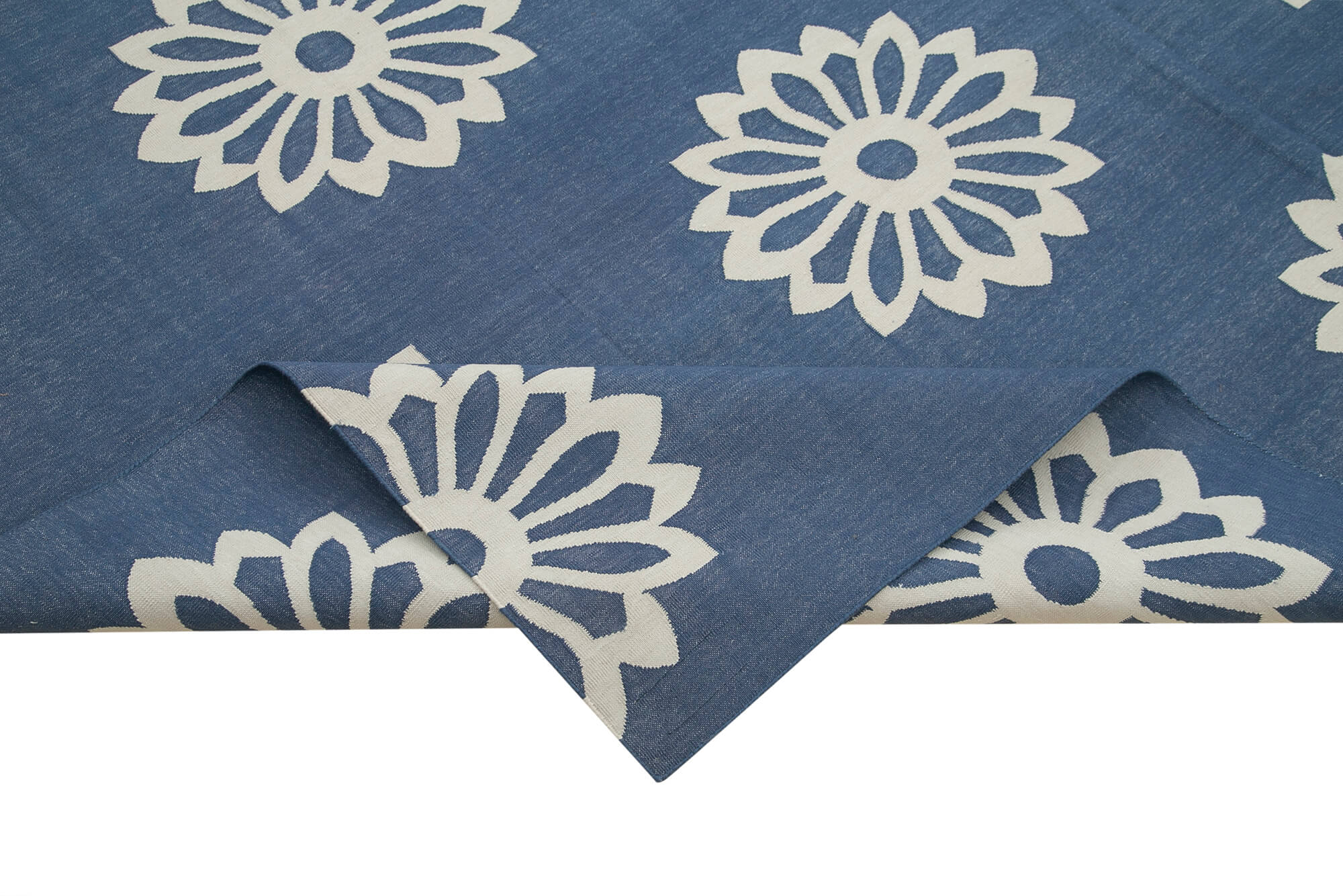 Geometric Duri Blue Geometric Cotton Wool Handmade Area Rug 9'1'' x 11'11''