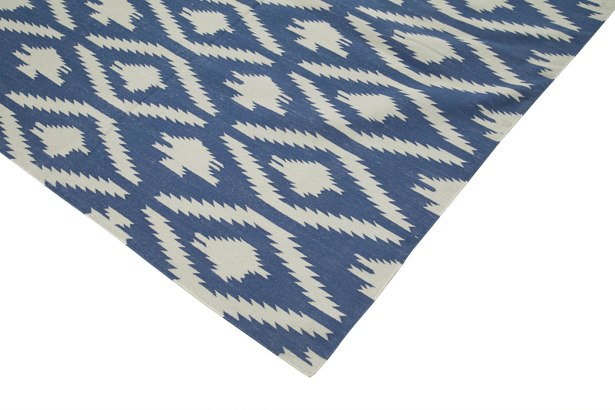 Geometric Duri Blue Geometric Cotton Wool Handmade Area Rug 9'3'' x 11'11''