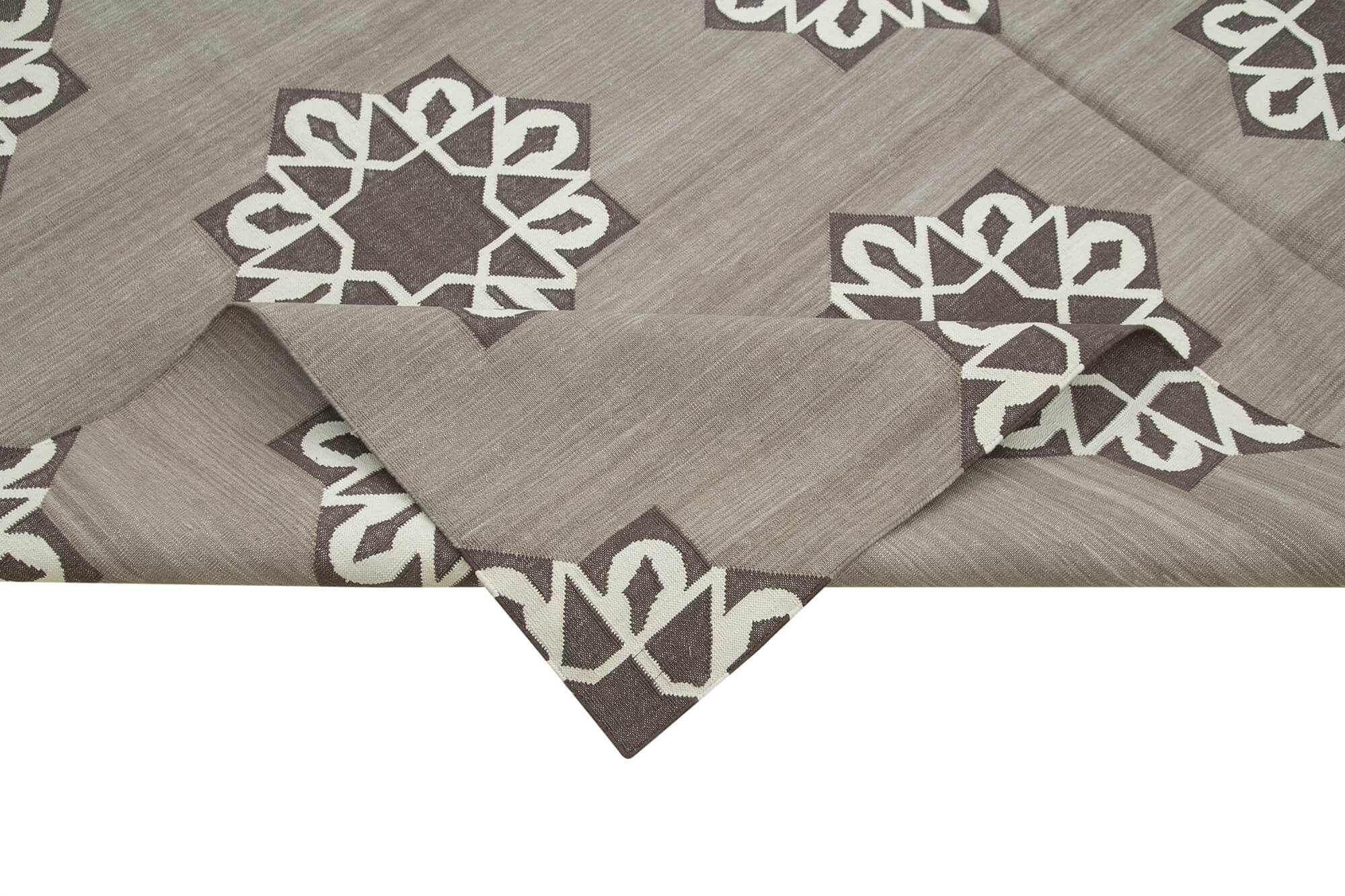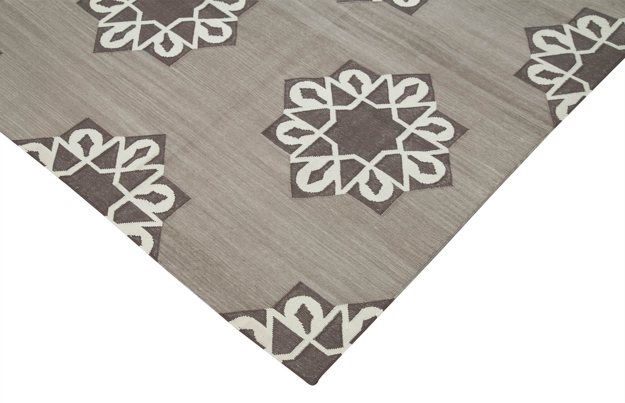 Geometric Duri Brown Geometric Cotton Wool Handmade Area Rug 7'10'' x 9'8''