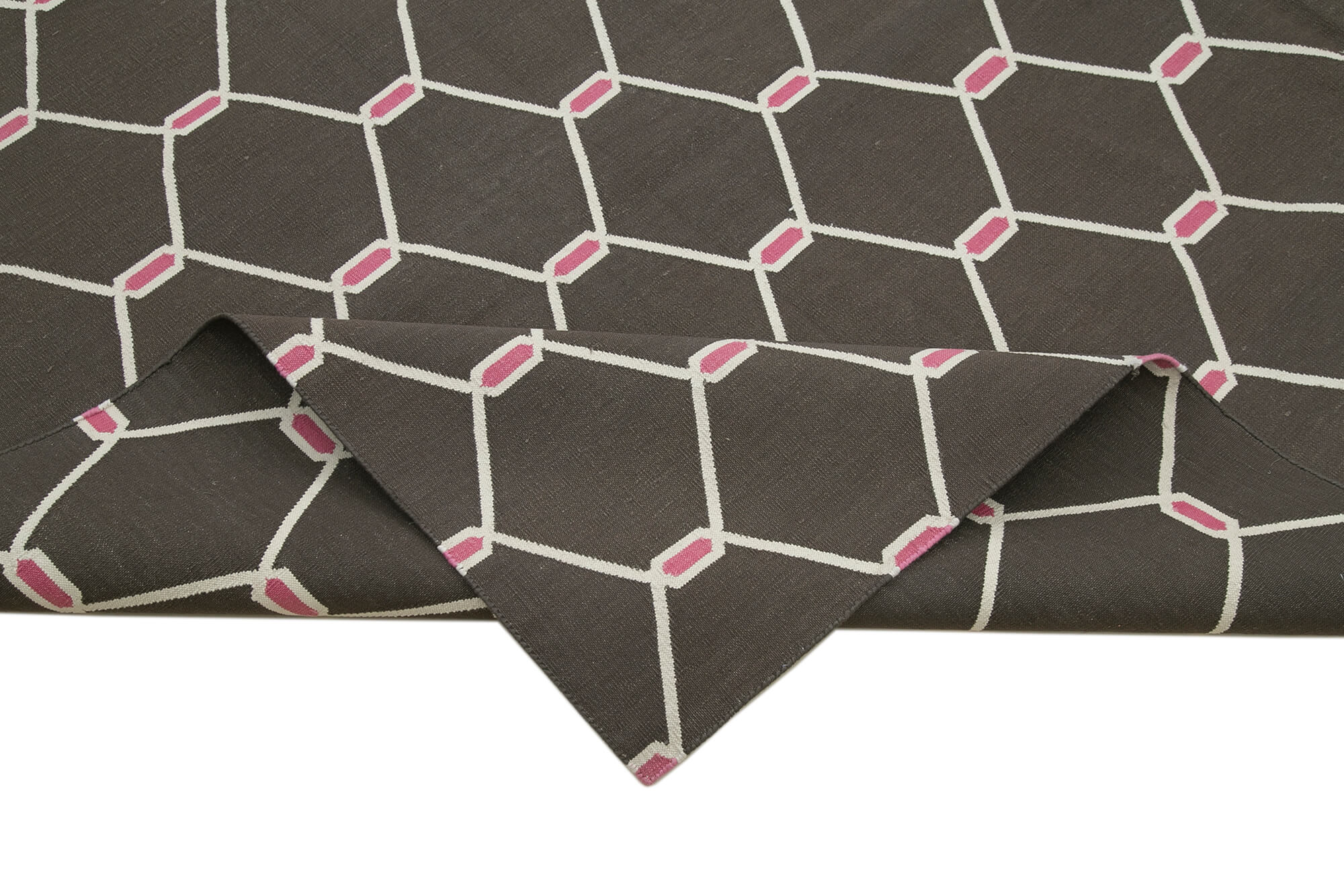 Geometric Duri Brown Geometric Cotton Wool Handmade Area Rug 9'1'' x 11'9''