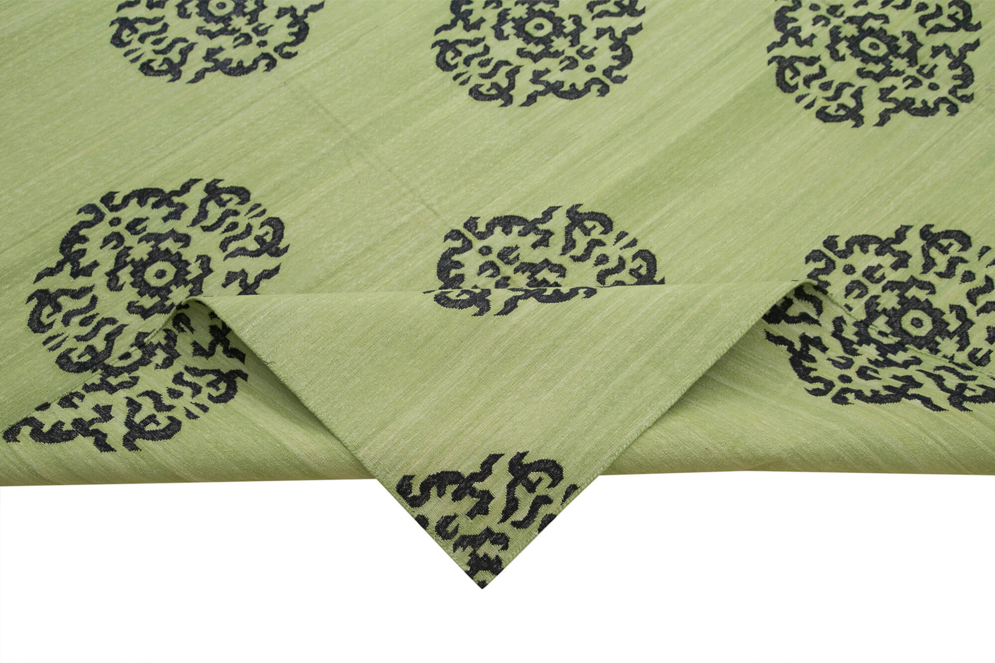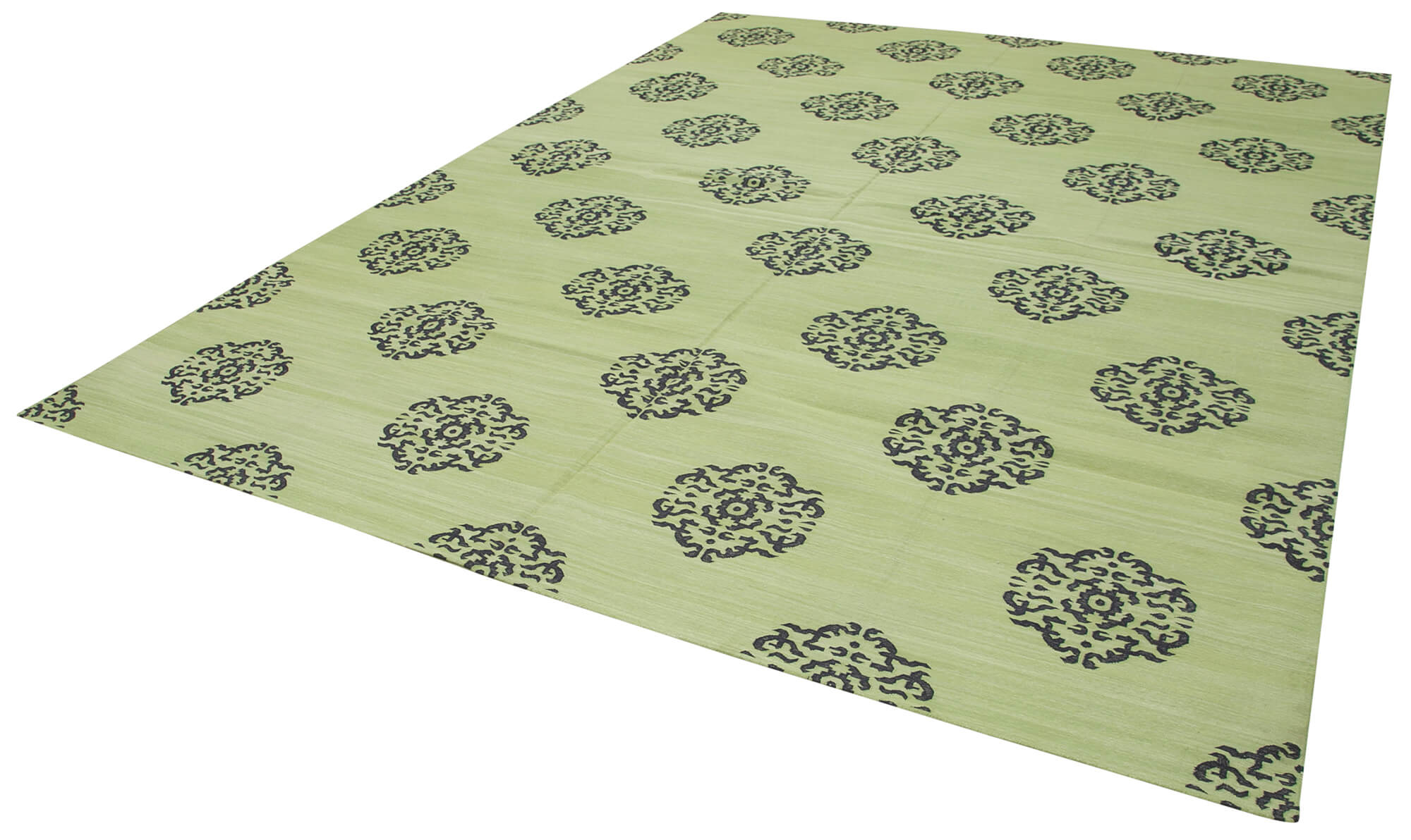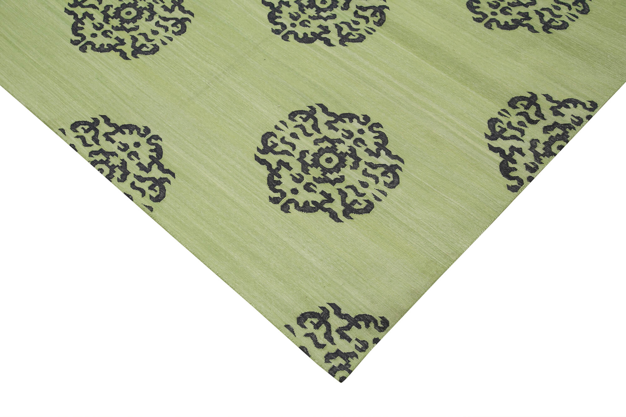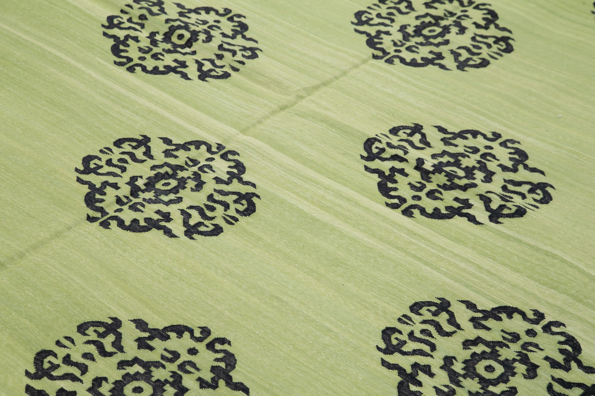 Geometric Duri Green Geometric Cotton Wool Handmade Area Rug 9'1'' x 11'10''