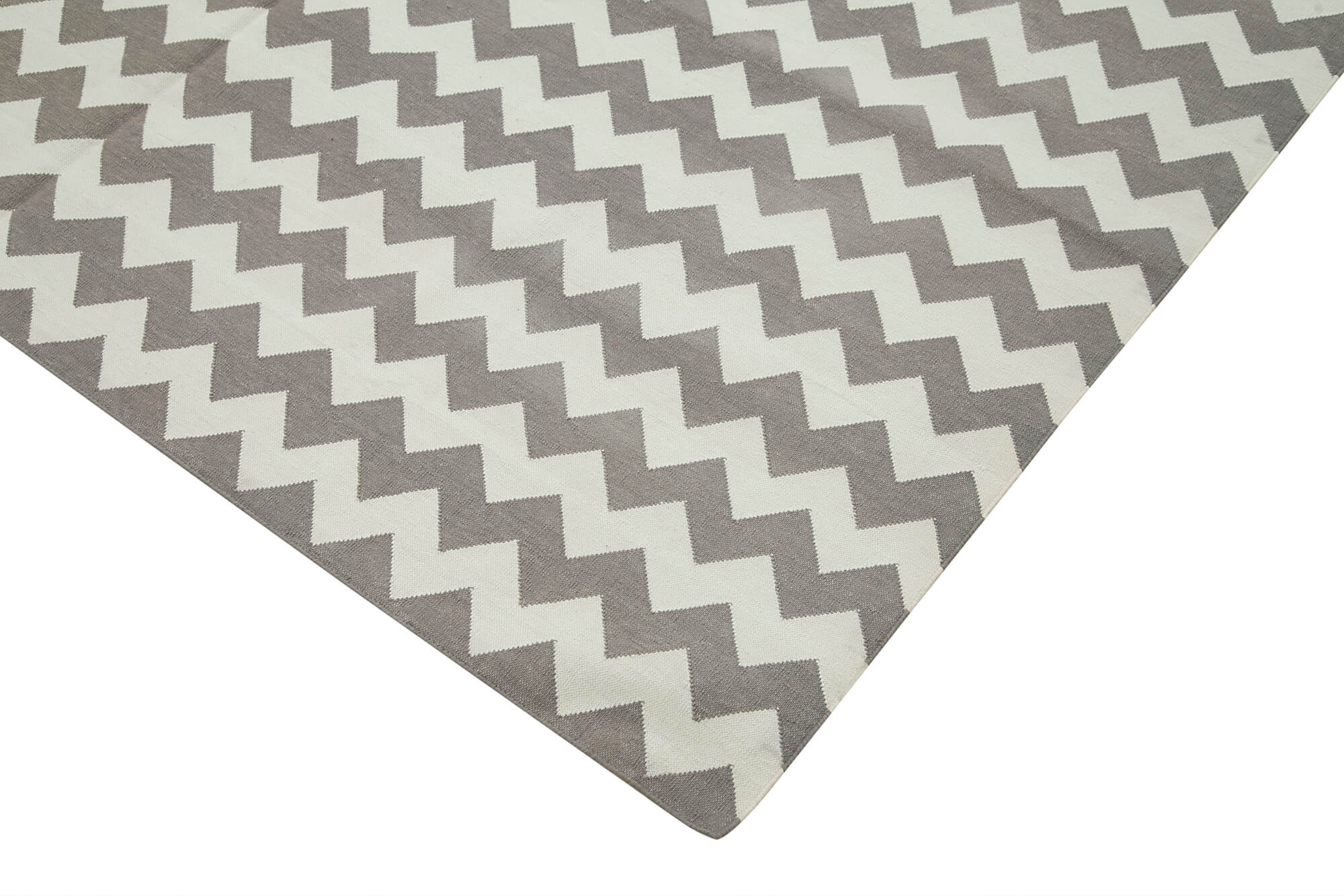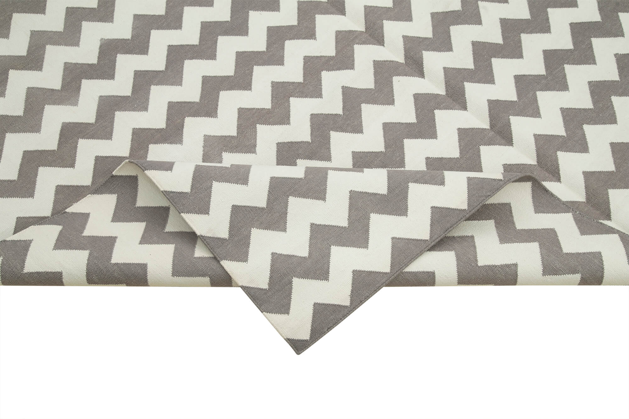 Geometric Duri Grey Geometric Cotton Wool Handmade Area Rug 6'0'' x 9'1''