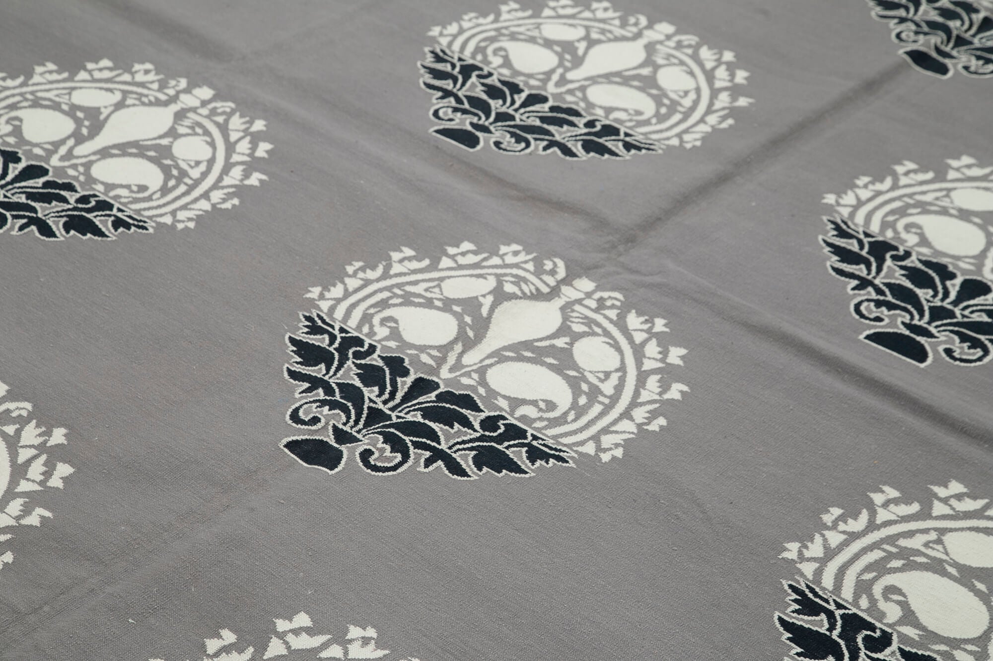 This handmade area rug blends traditional craftsmanship with modern durability to enhance your living space. Crafted as a hand woven carpet from natural wool and cotton, this geometric grey cotton wool rug measures 9'2''x11'11'', making it an ideal living room rug that combines style and function. The handmade floor covering features a durable cotton weave that ensures long-lasting use while maintaining a soft texture underfoot.