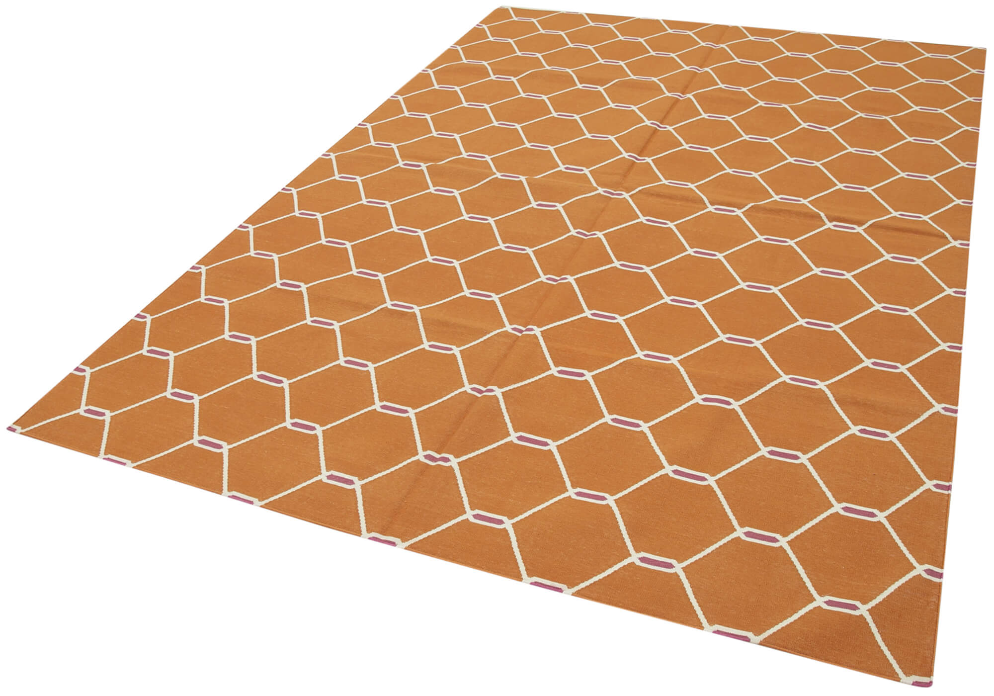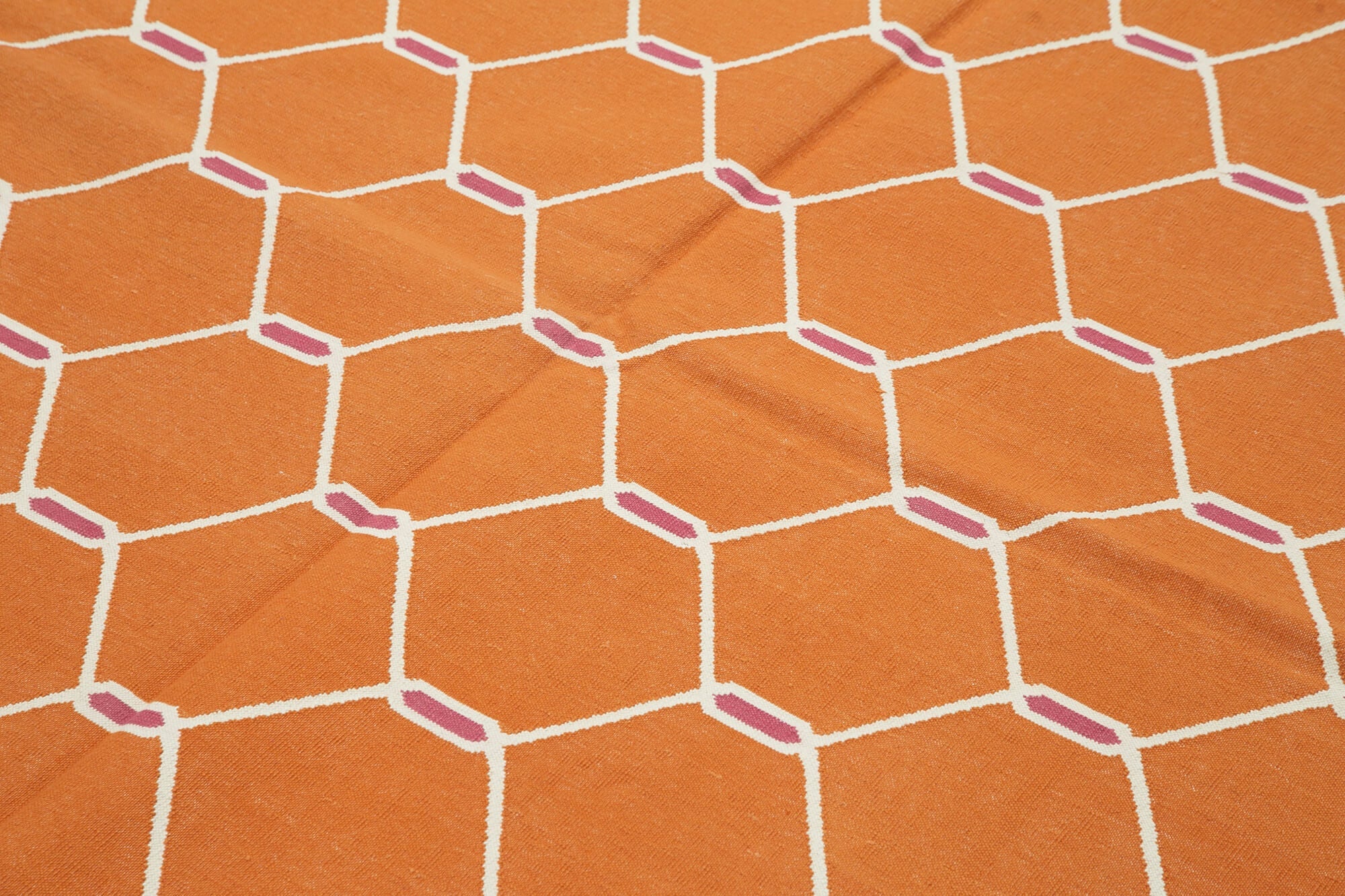 Geometric Duri Orange Geometric Cotton Wool Handmade Area Rug 6'0'' x 8'9''