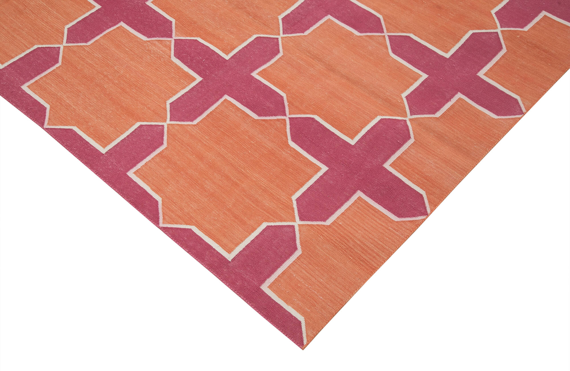 Geometric Duri Orange Geometric Cotton Wool Handmade Area Rug 8'0'' x 9'9''
