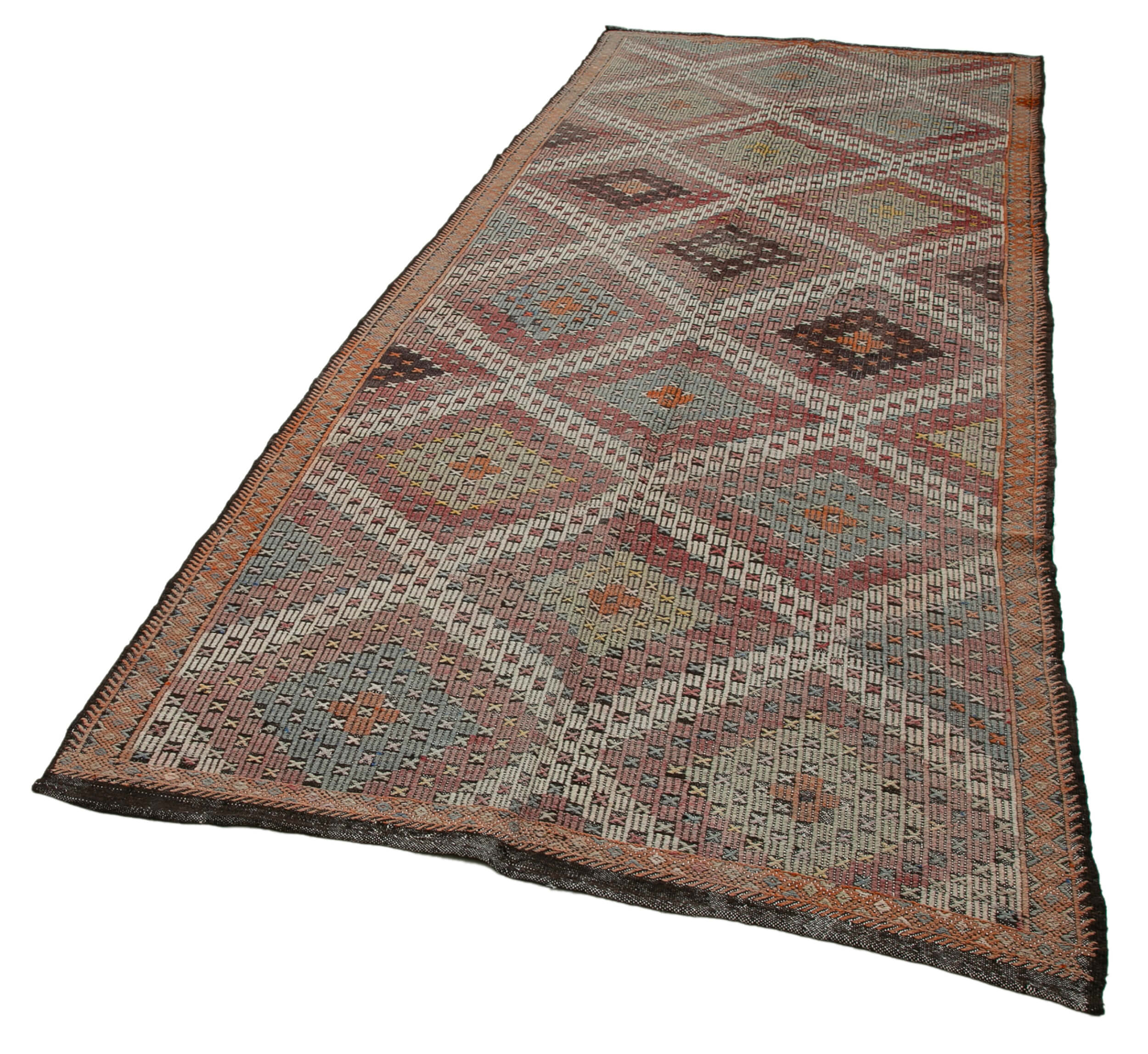 Geometric Kilim Beige Geometric Goat Hair Handmade Rug 4'9'' x 12'2''