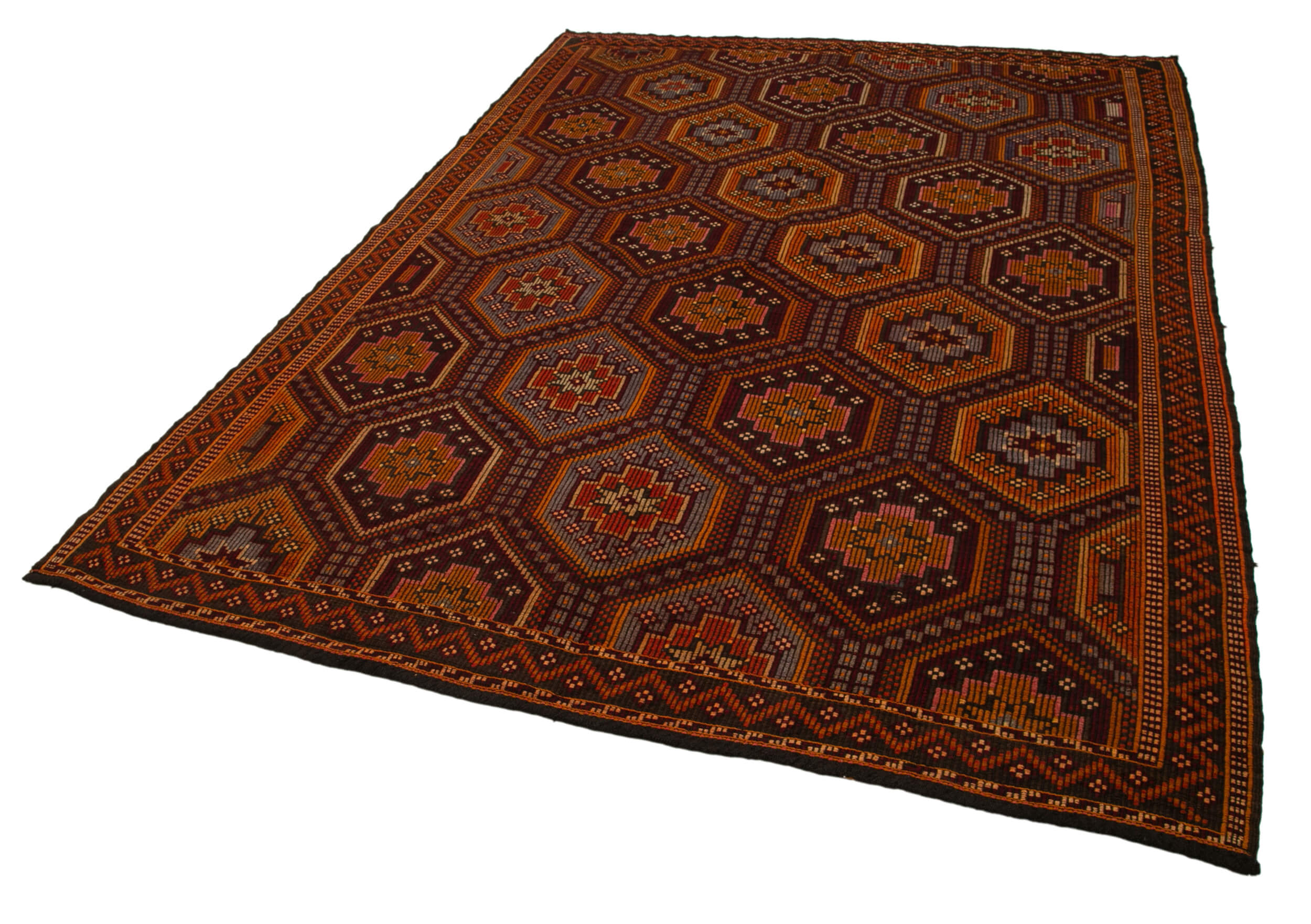 Geometric Kilim Orange Geometric Goat Hair Handmade Rug 6'11'' x 10'1''