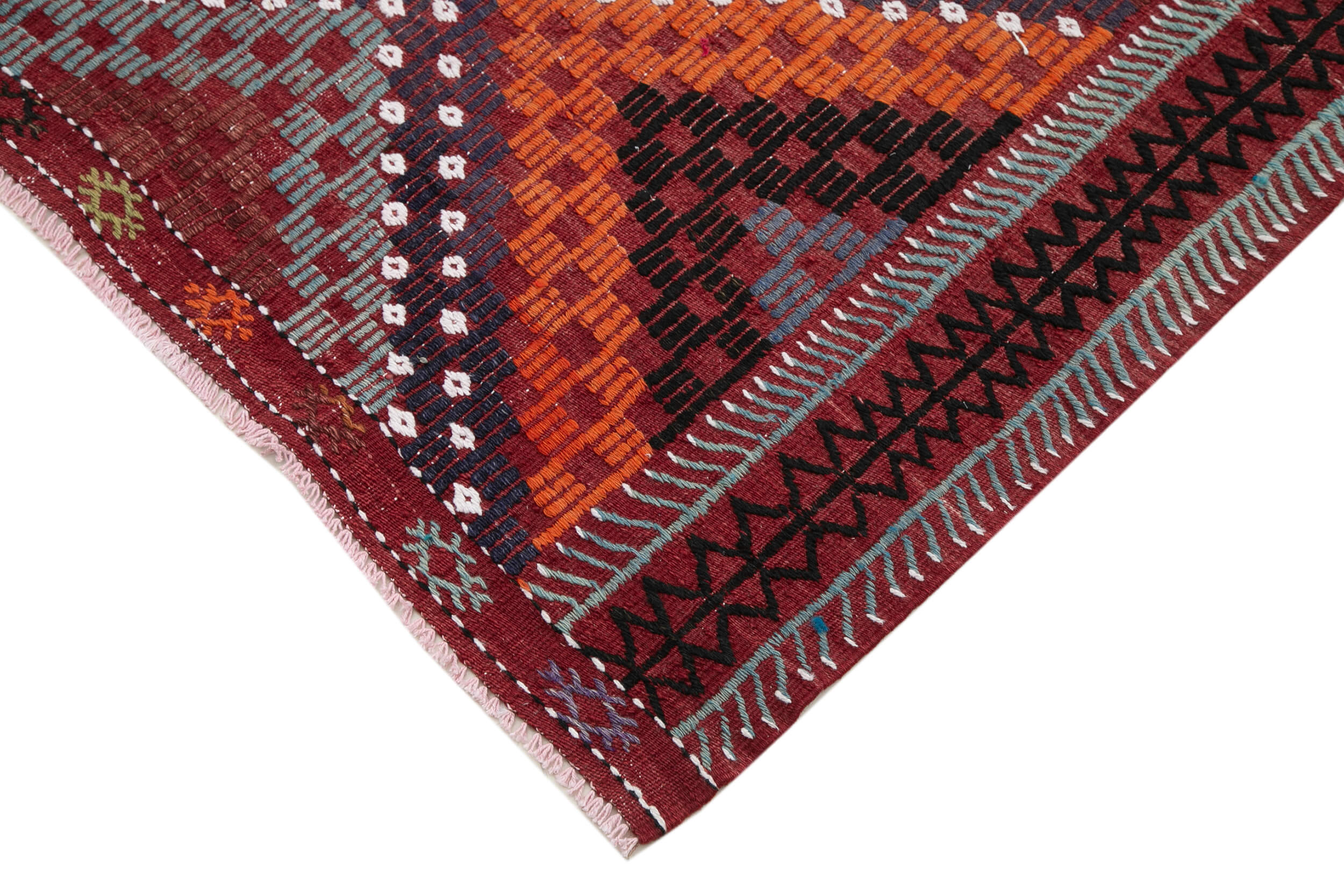 Geometric Kilim Red Geometric Goat Hair Handmade Rug 5'4'' x 8'9''