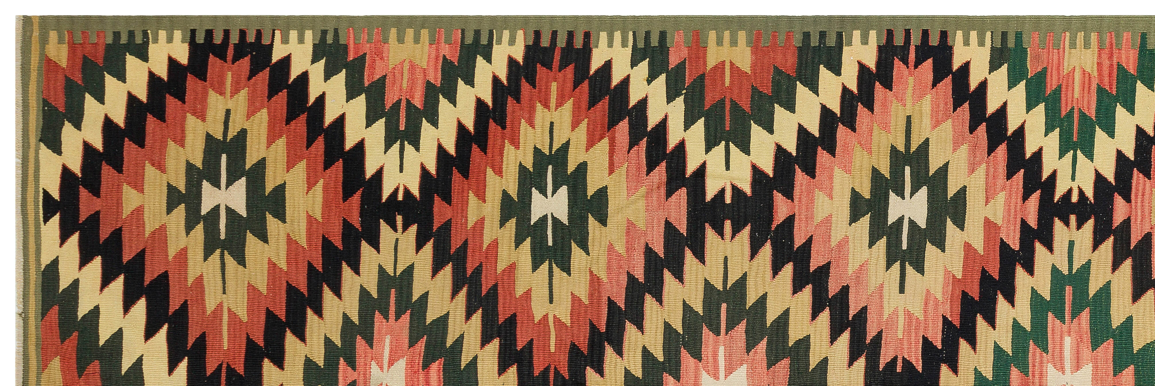 Girit Brown Geometric Wool Handmade Area Rug 4'3" x 12'0"