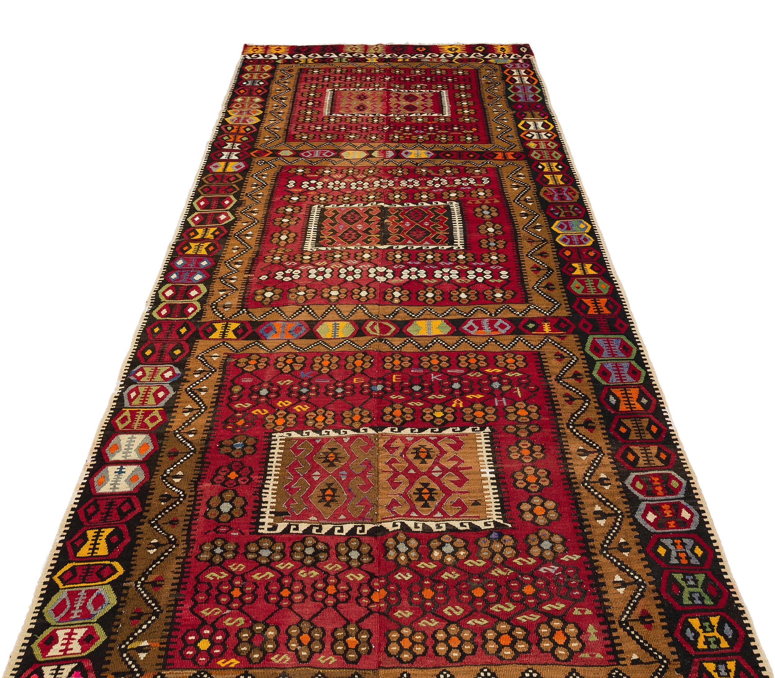 Girit Brown Geometric Wool Handmade Area Rug 4'7" x 10'10"