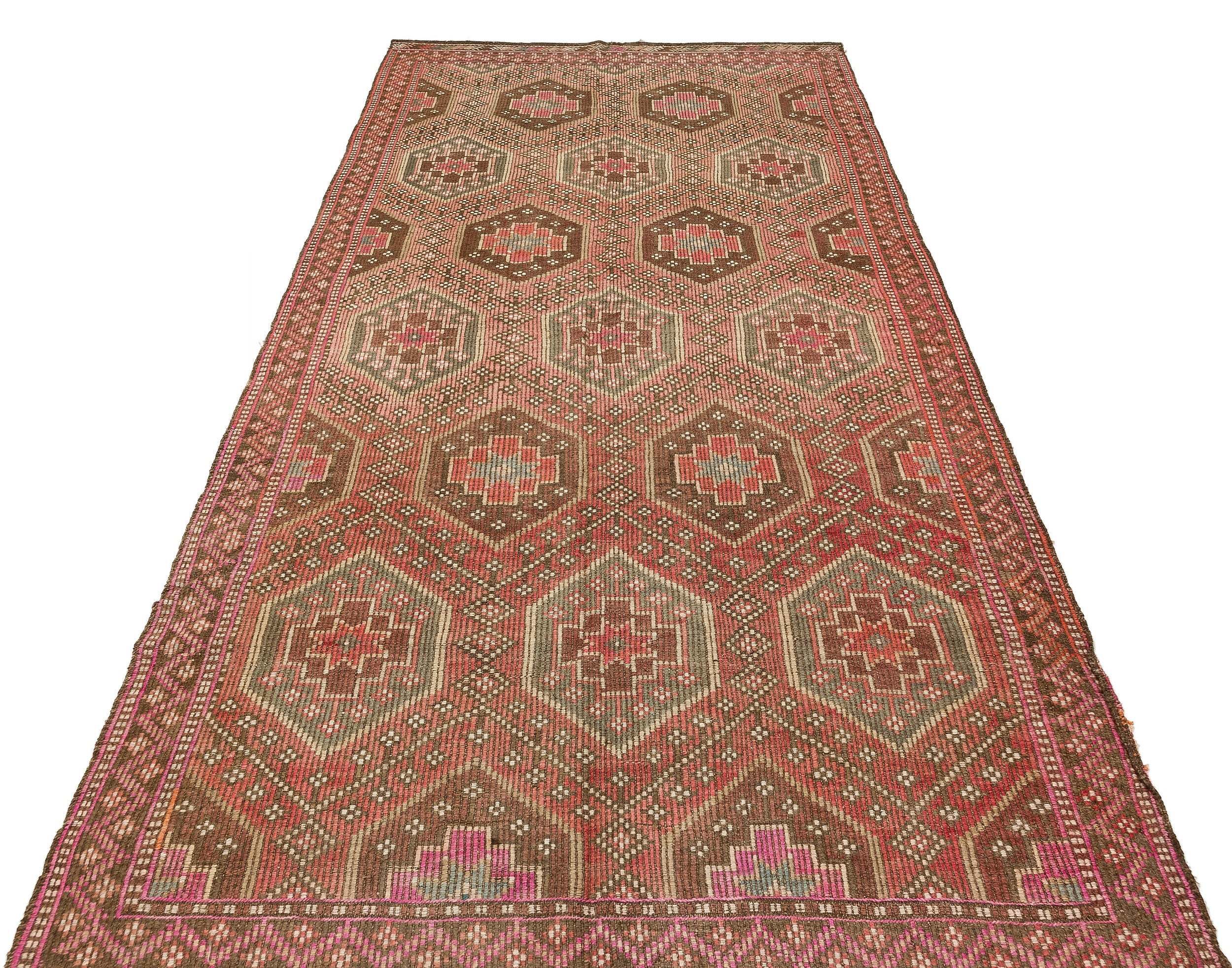 Girit Brown Geometric Wool Handmade Area Rug 4'11" x 10'0"