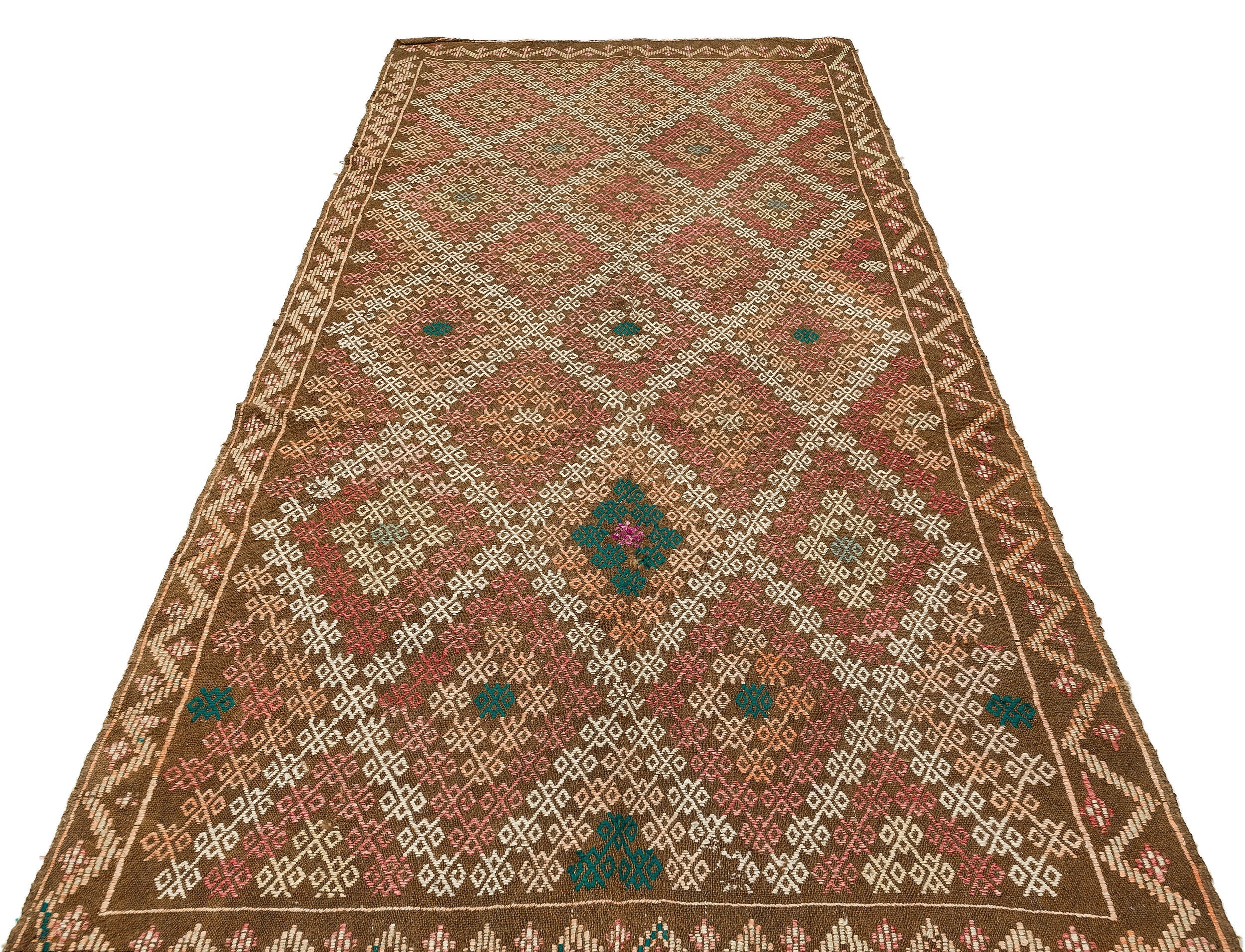 Girit Brown Geometric Wool Handmade Area Rug 5'1" x 10'6"