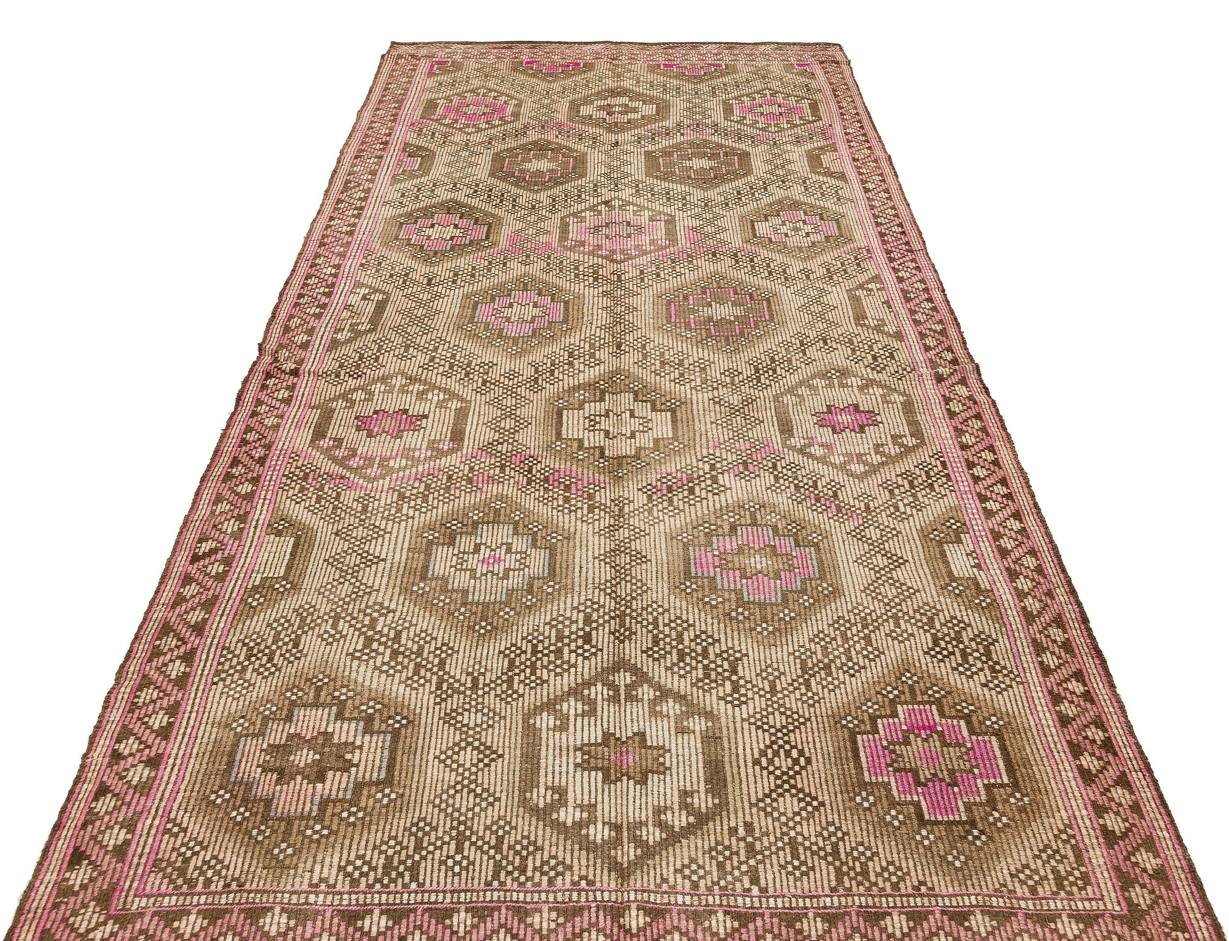 Girit Brown Geometric Wool Handmade Area Rug 5'1" x 10'4"