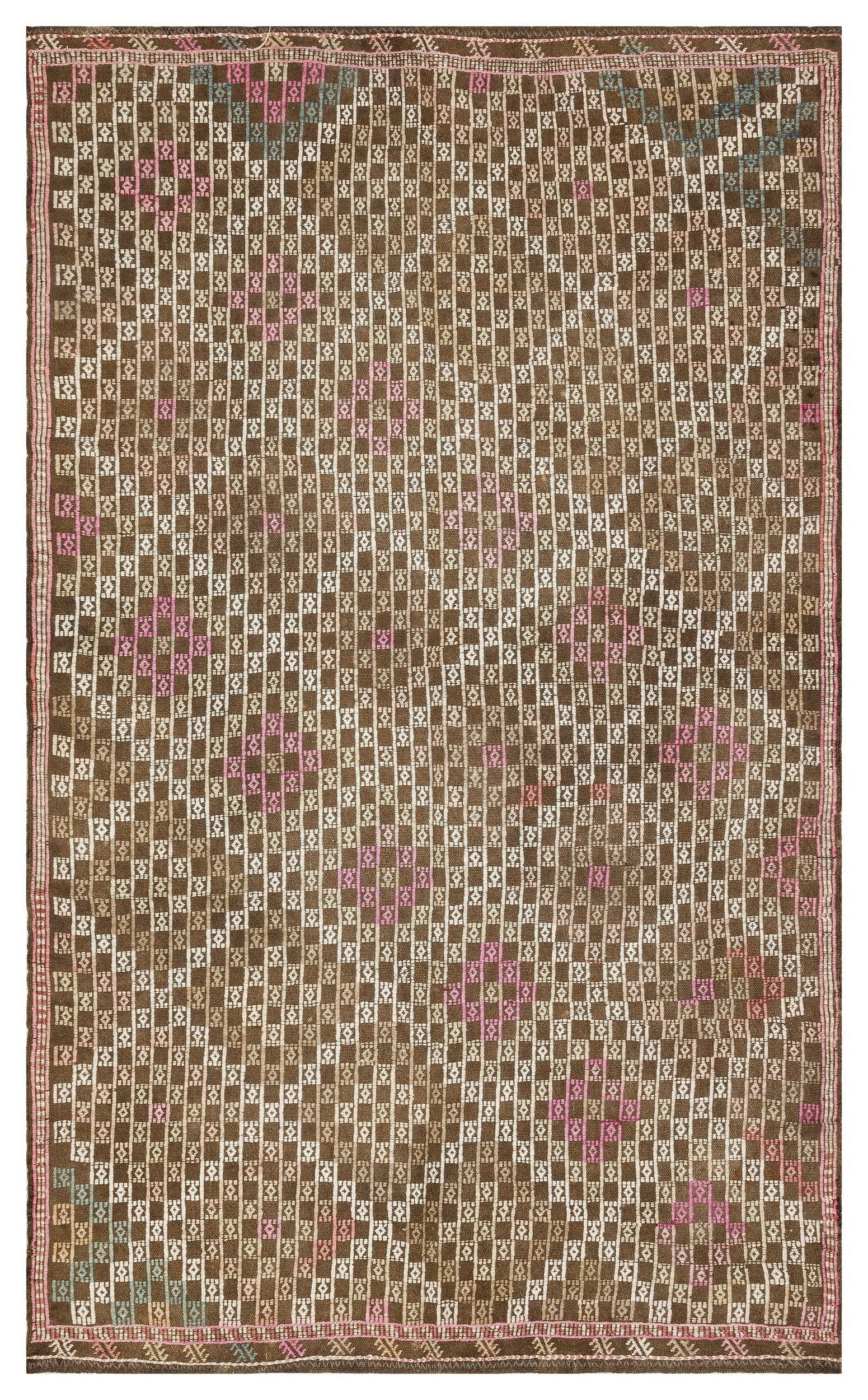 Girit Brown Geometric Wool Handmade Area Rug 5'3" x 9'1"