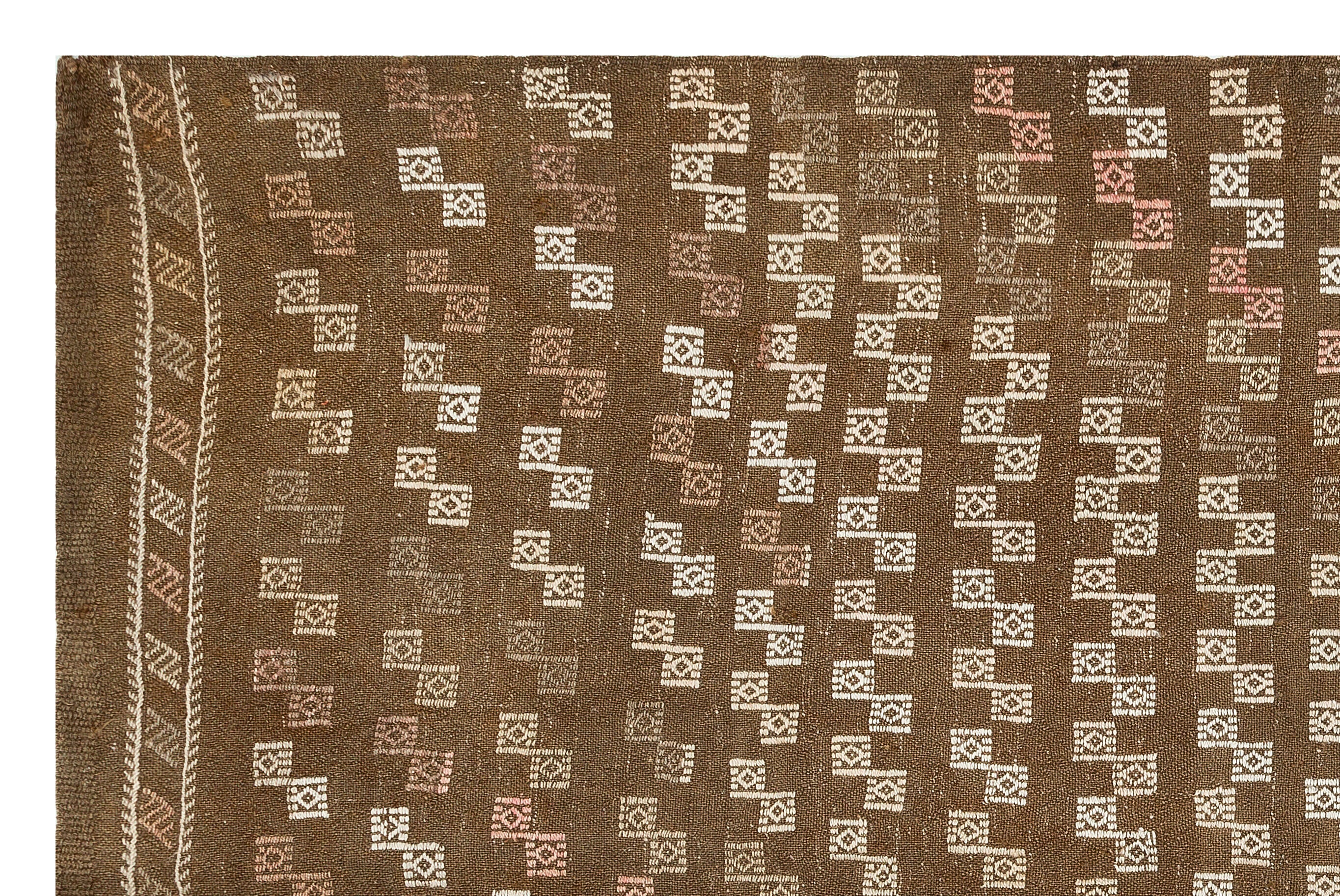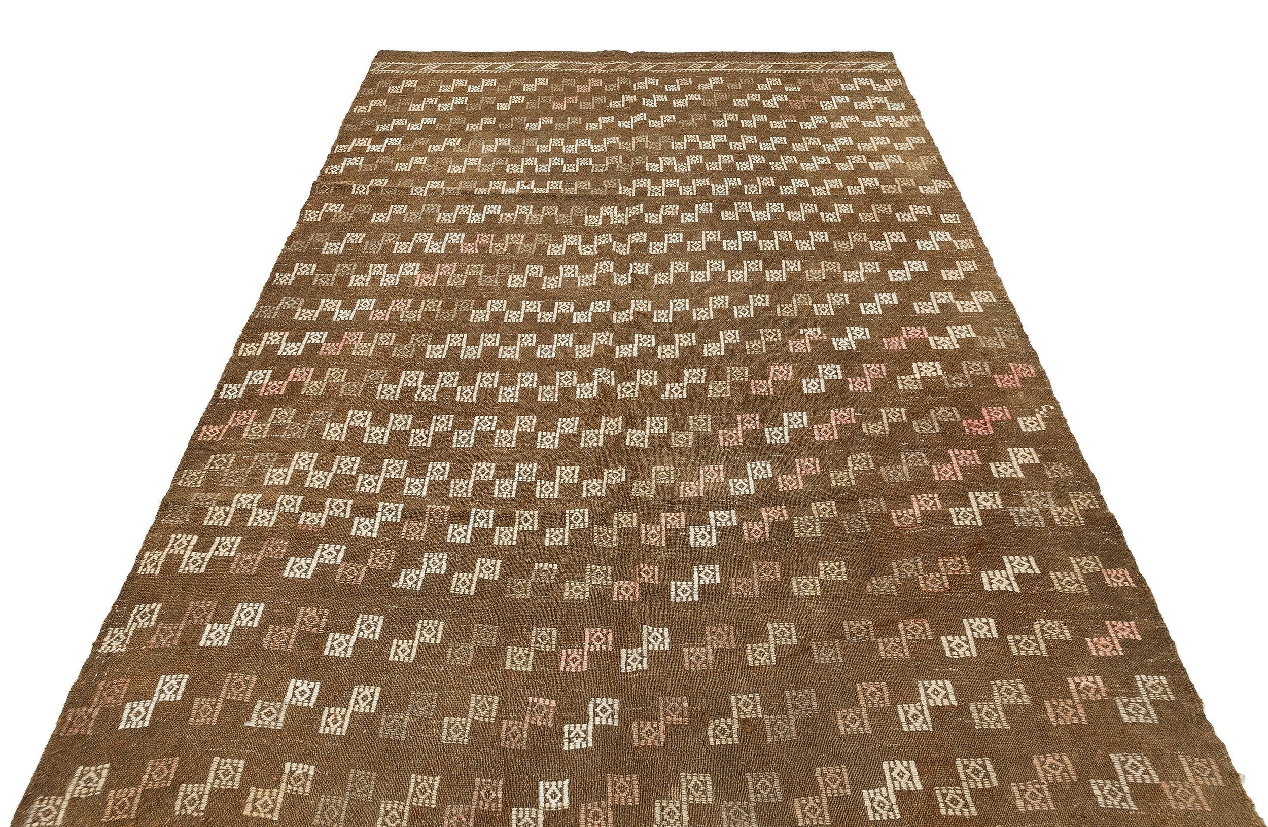 Girit Brown Geometric Wool Handmade Area Rug 5'6" x 7'11"