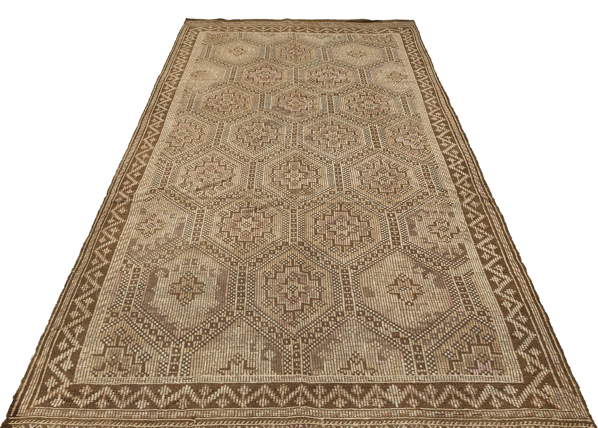 Girit Brown Geometric Wool Handmade Area Rug 5'11" x 9'5"