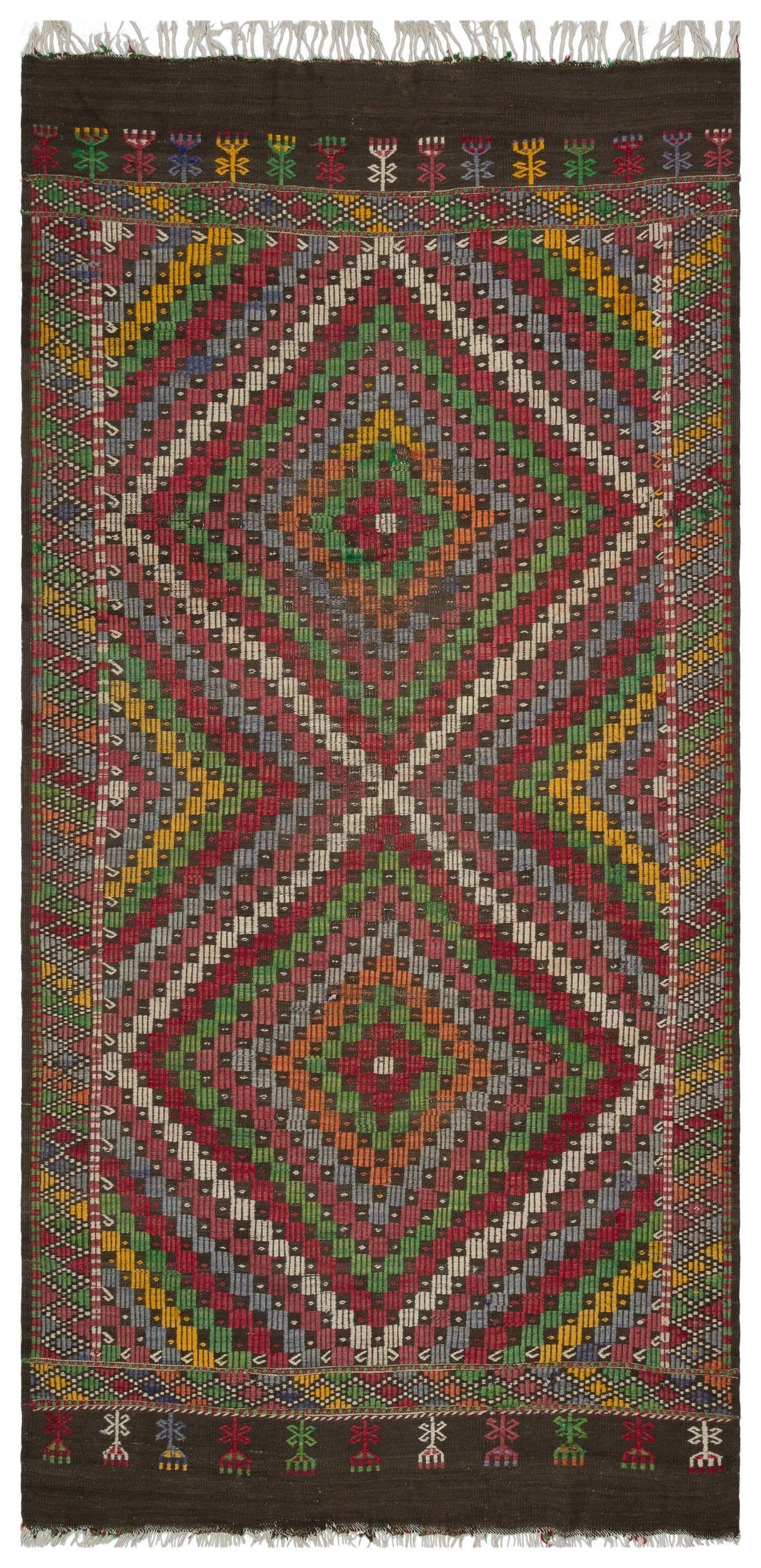 Girit Brown Geometric Wool Handmade Area Rug 5'7" x 10'10"