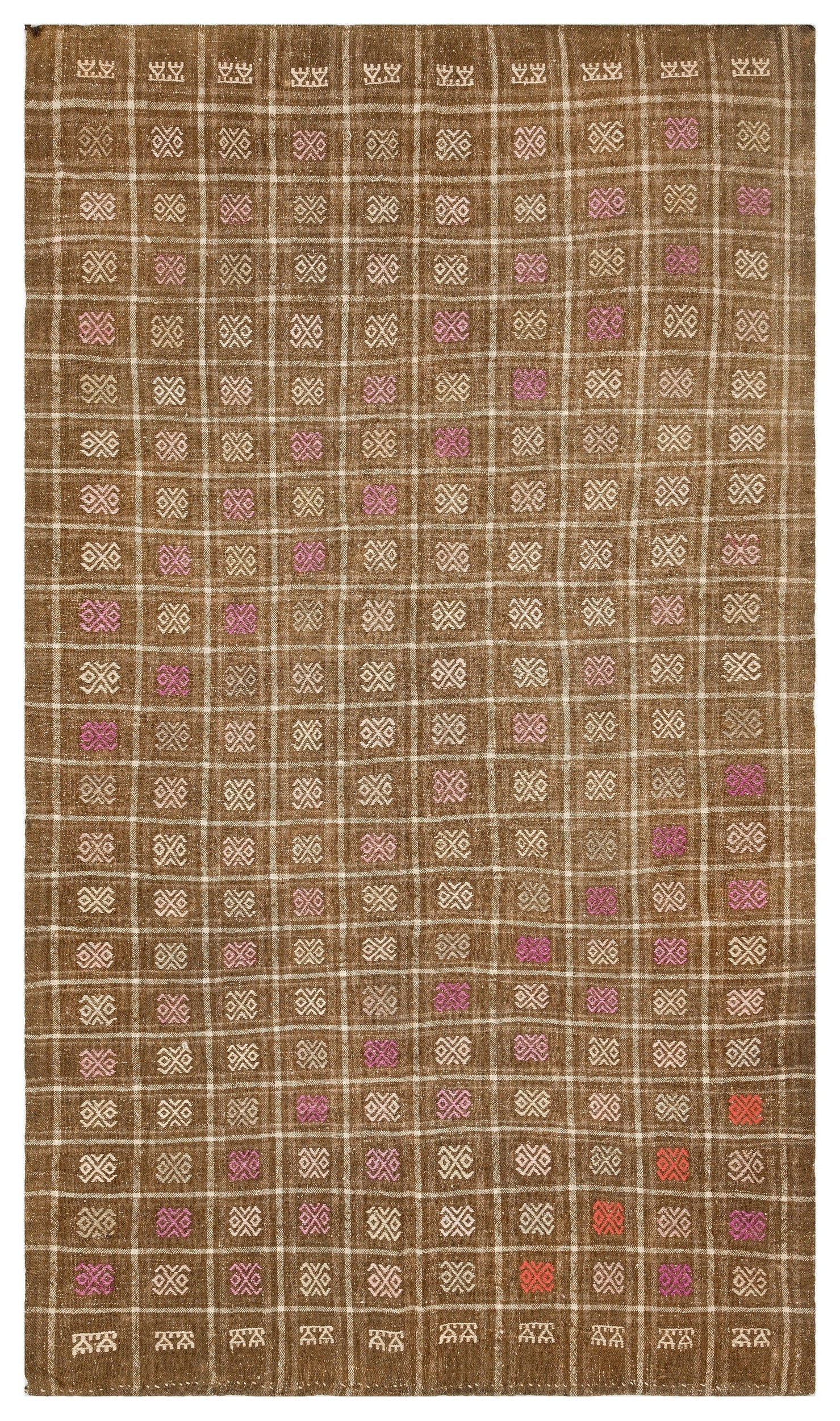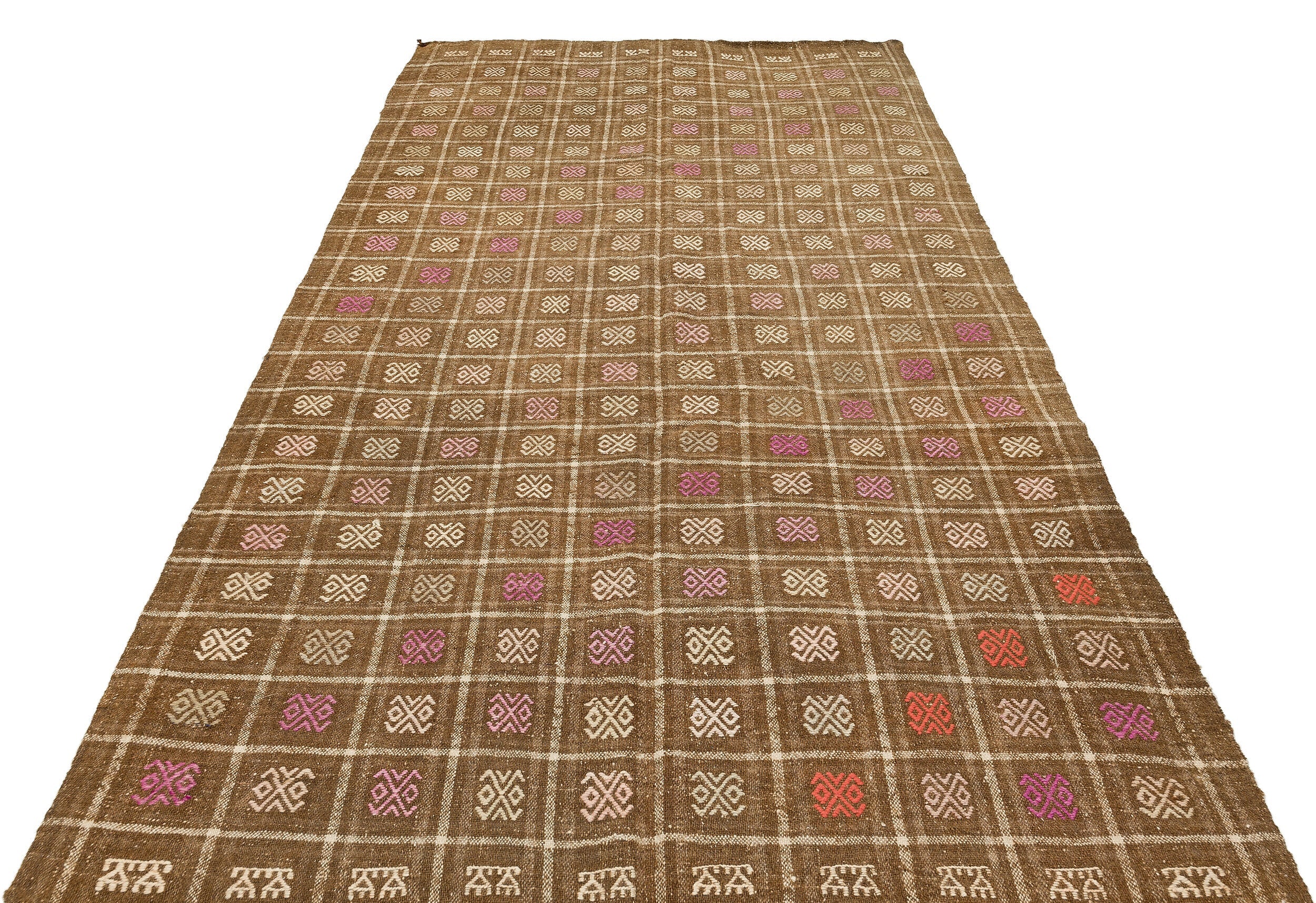 Girit Brown Geometric Wool Handmade Area Rug 5'7" x 9'10"