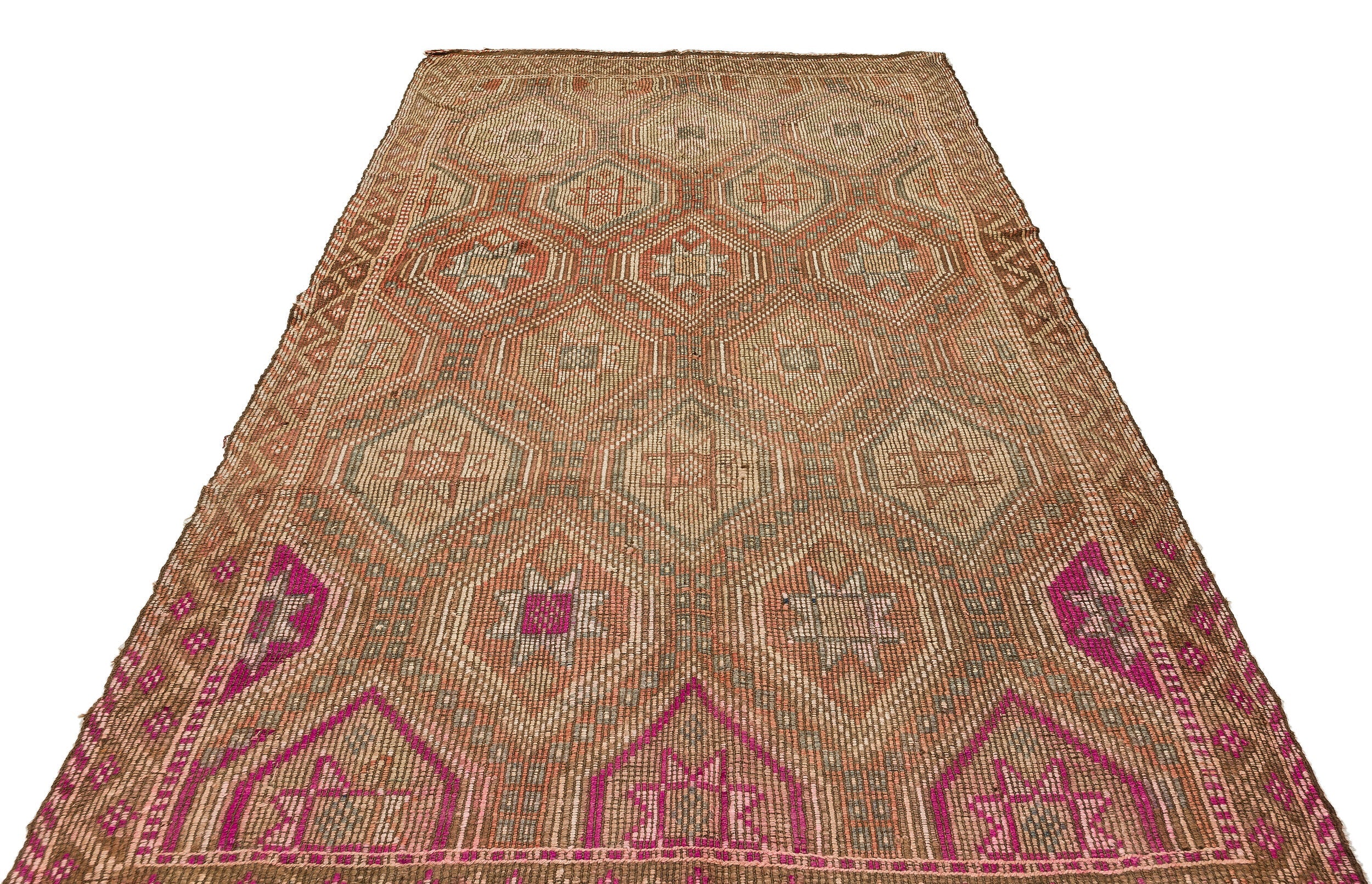 Girit Brown Geometric Wool Handmade Area Rug 5'11" x 9'9"