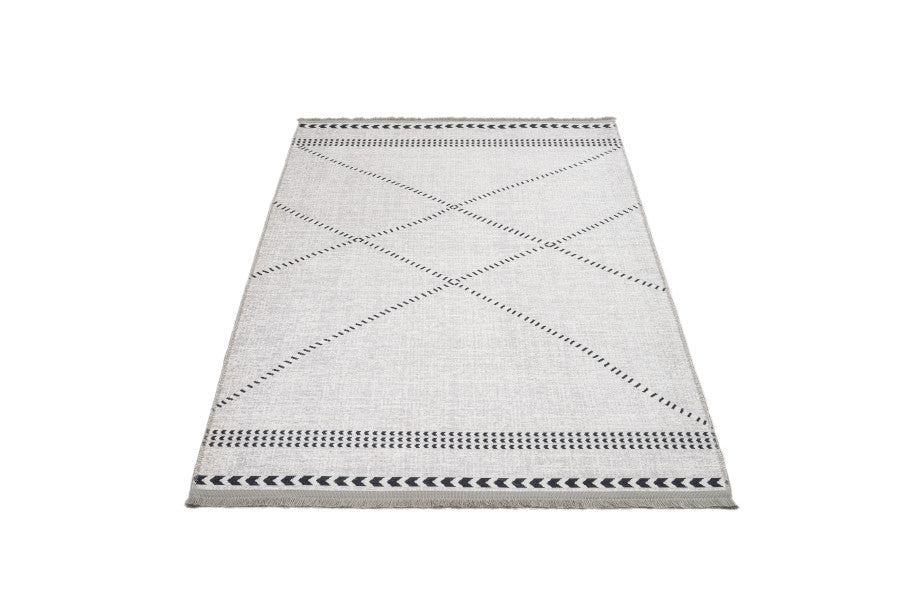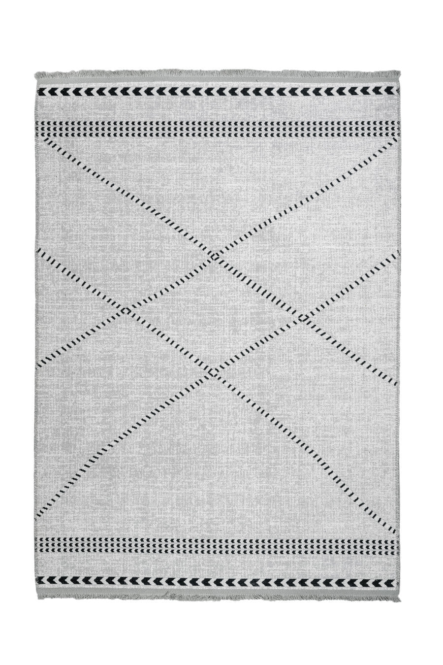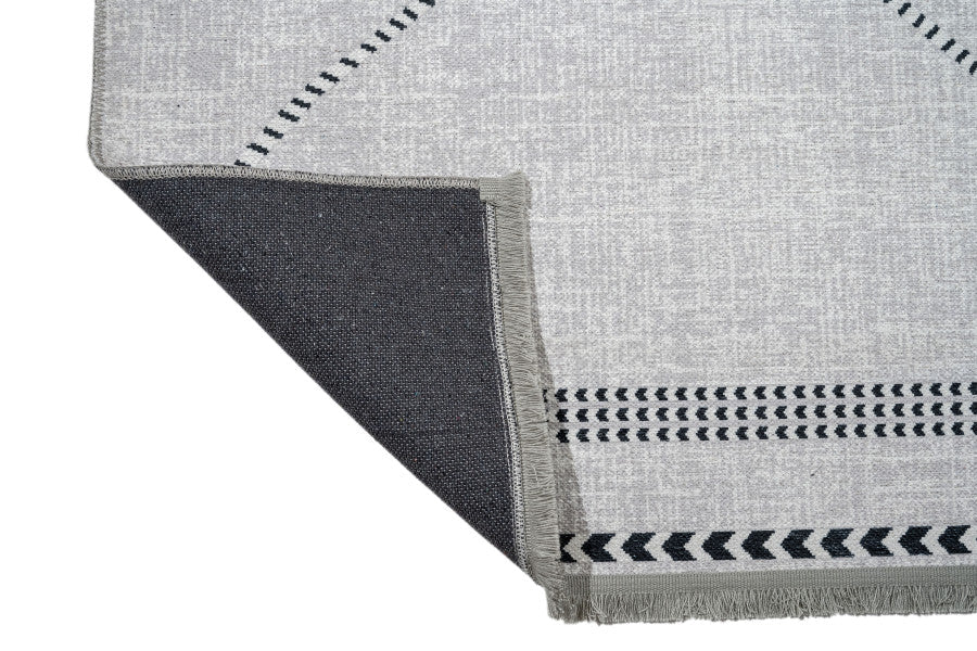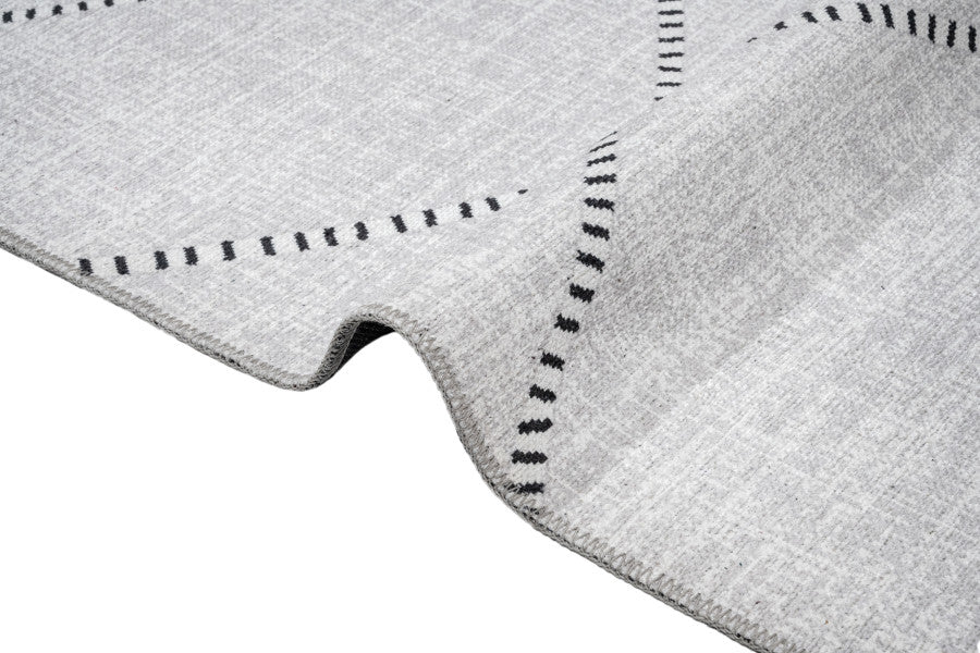 Grey Geometric Area Rug – Washable Cotton Chenille Carpet by Pia Monte