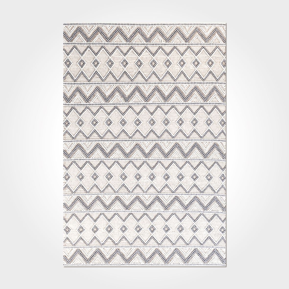 - Cream geometric carpet color → neutral tone complements diverse interior styles
