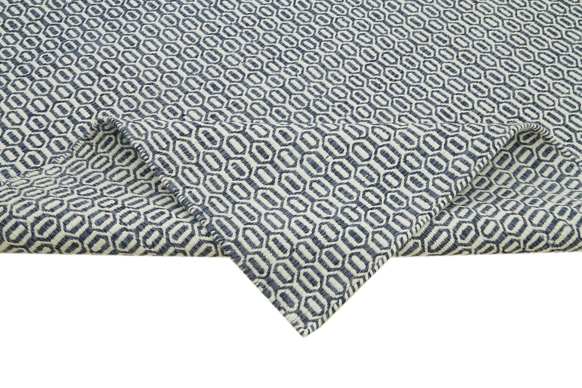 Nepal Geometric Blue Geometric Wool Cotton Handmade Rug 8'0'' x 10'0''