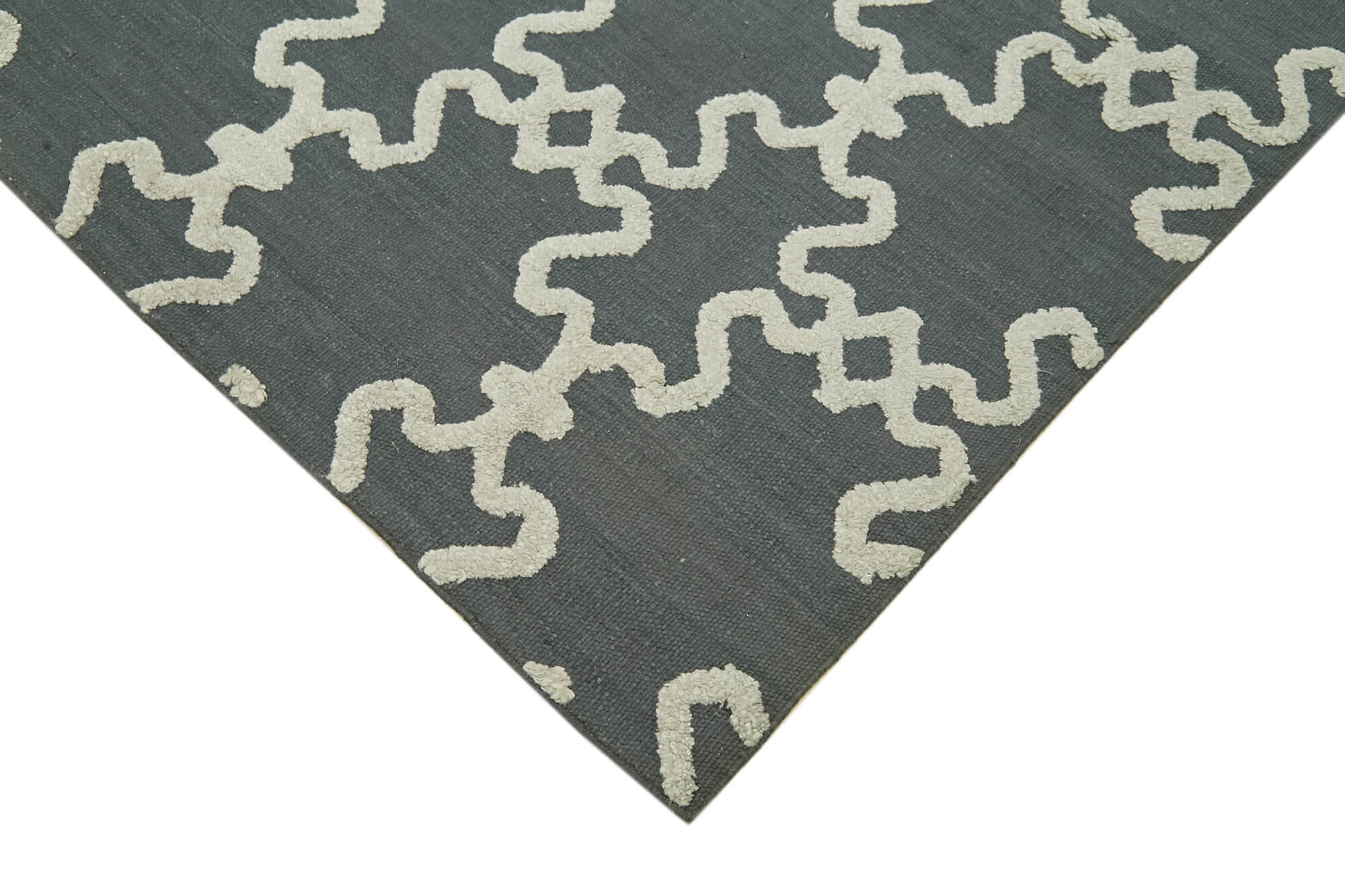 Nepal Geometric Grey Geometric Wool Cotton Handmade Rug 8'0'' x 9'1''