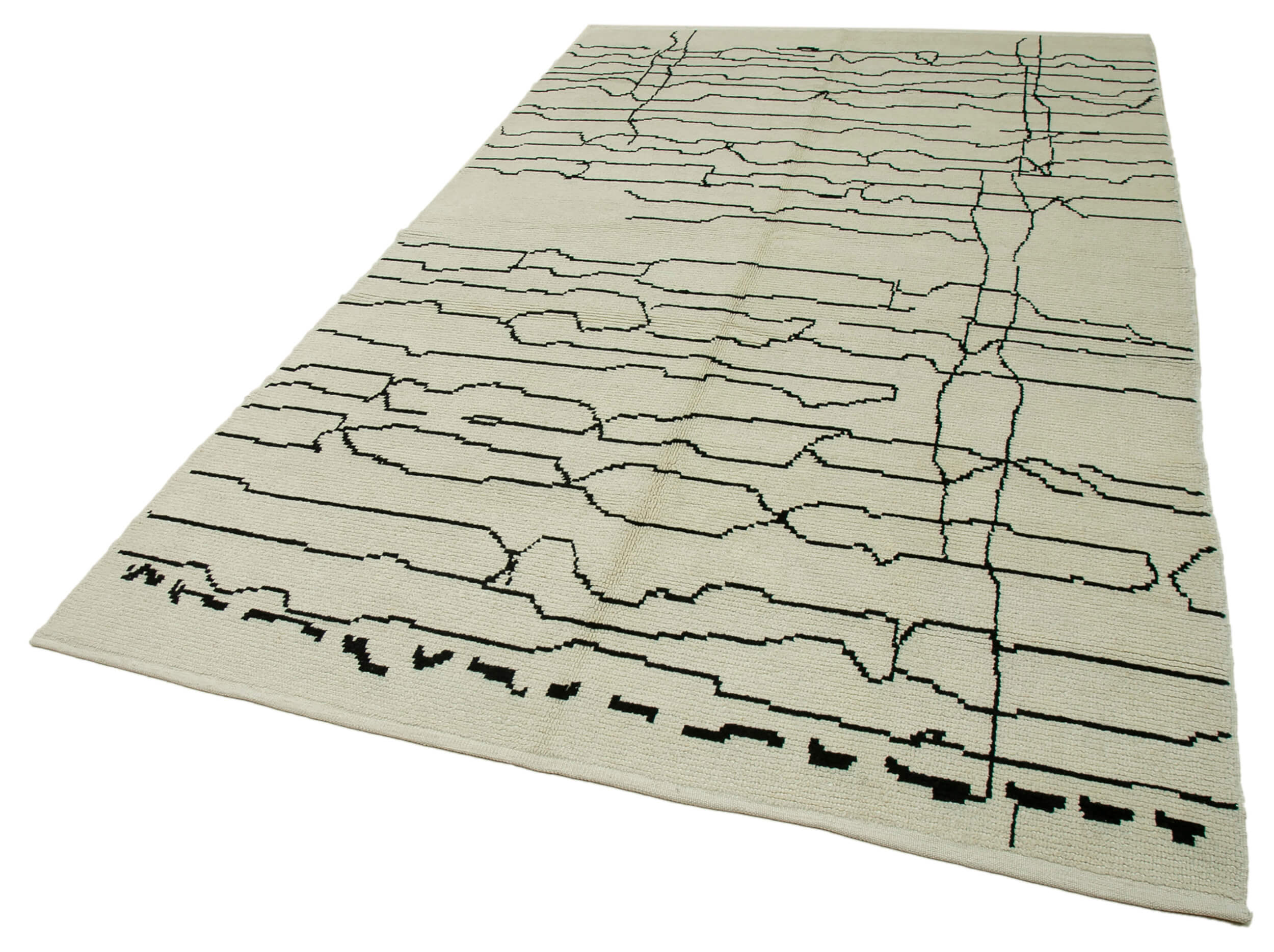 Purpleocco Beige Geometric Wool Cotton Handmade Rug 6'1'' x 9'10''