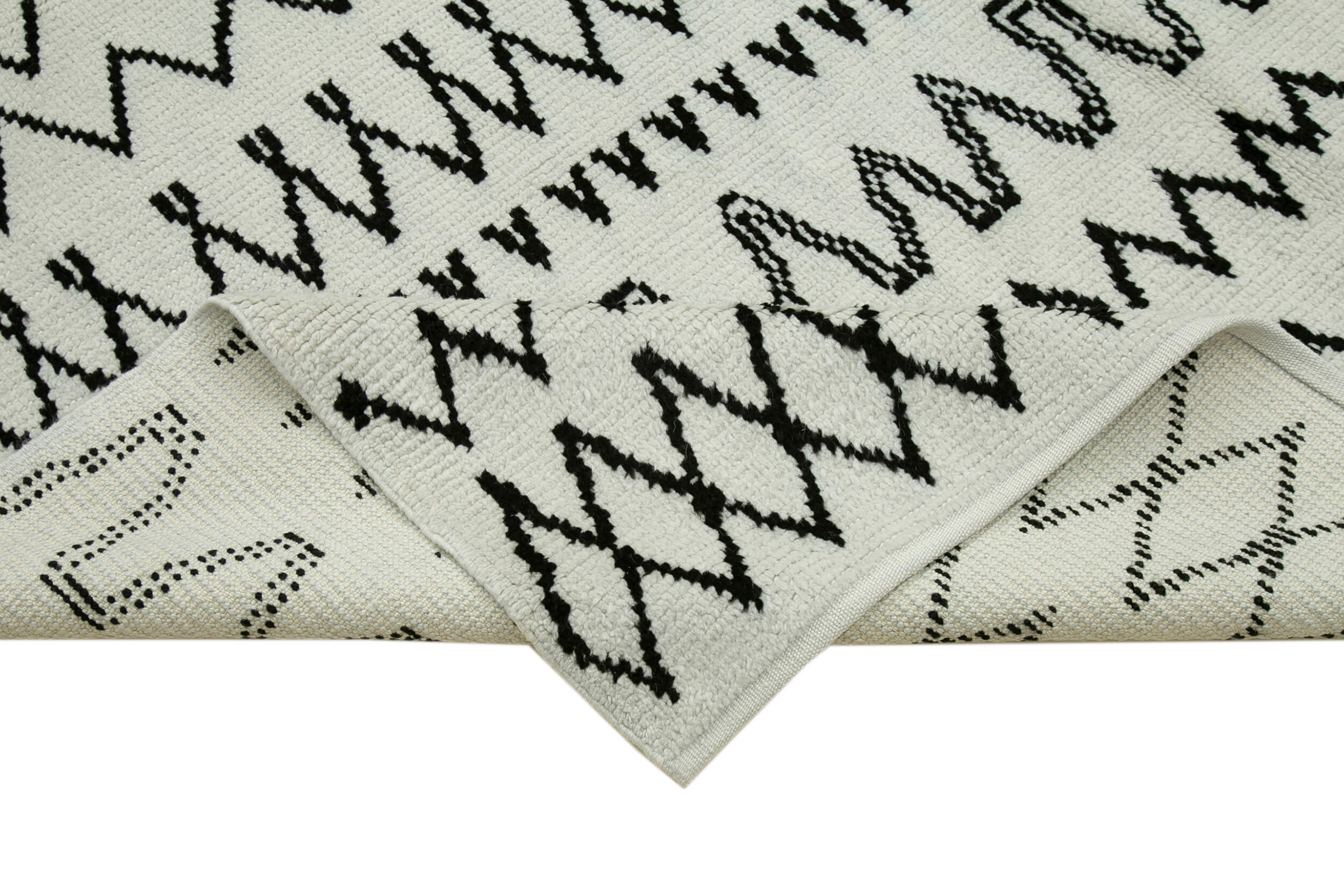 Purpleocco Beige Geometric Wool Cotton Handmade Rug 7'4'' x 10'6''