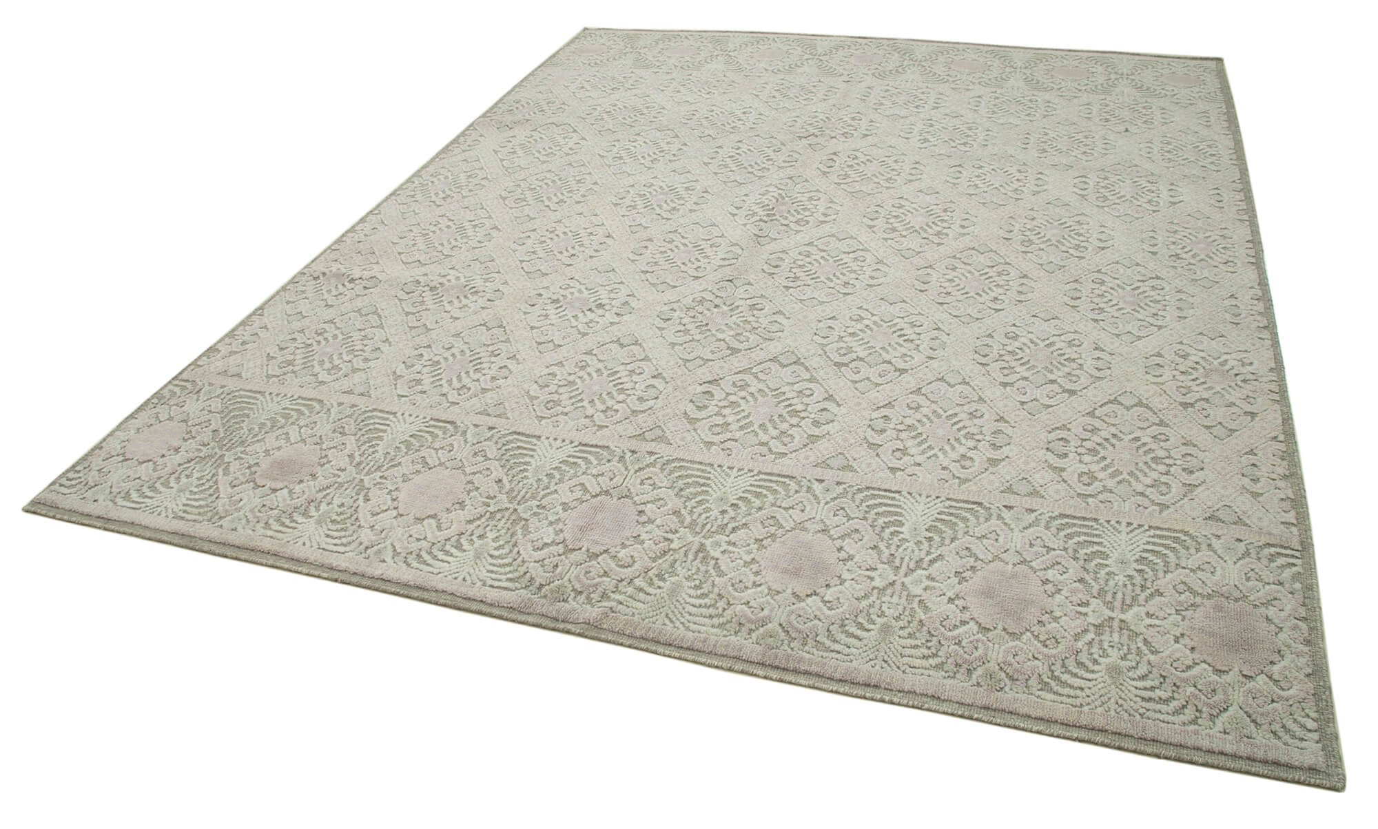 Purpleocco Beige Geometric Wool Cotton Handmade Rug 8'1'' x 10'4''