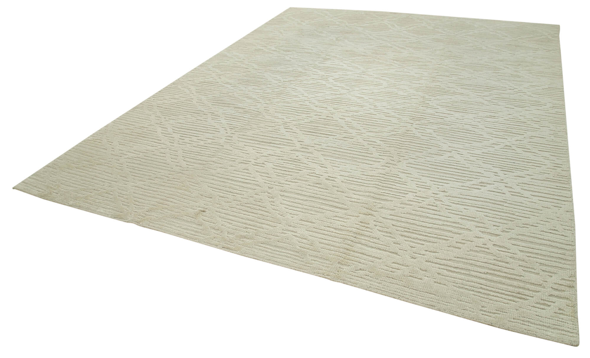 Purpleocco Beige Geometric Wool Cotton Handmade Rug 9'0'' x 12'0''
