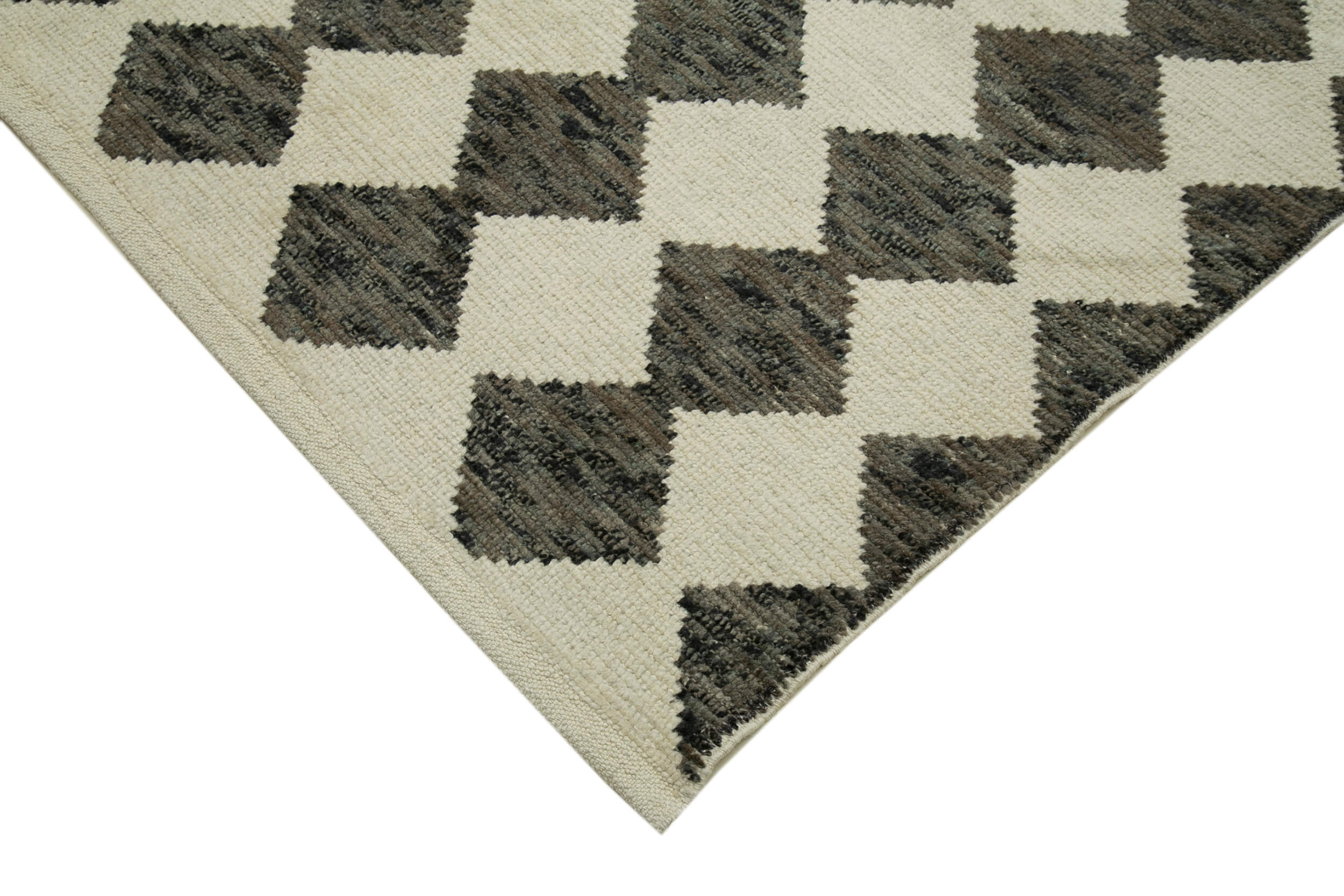 Purpleocco Beige Geometric Wool Cotton Handmade Rug 9'0'' x 12'6''