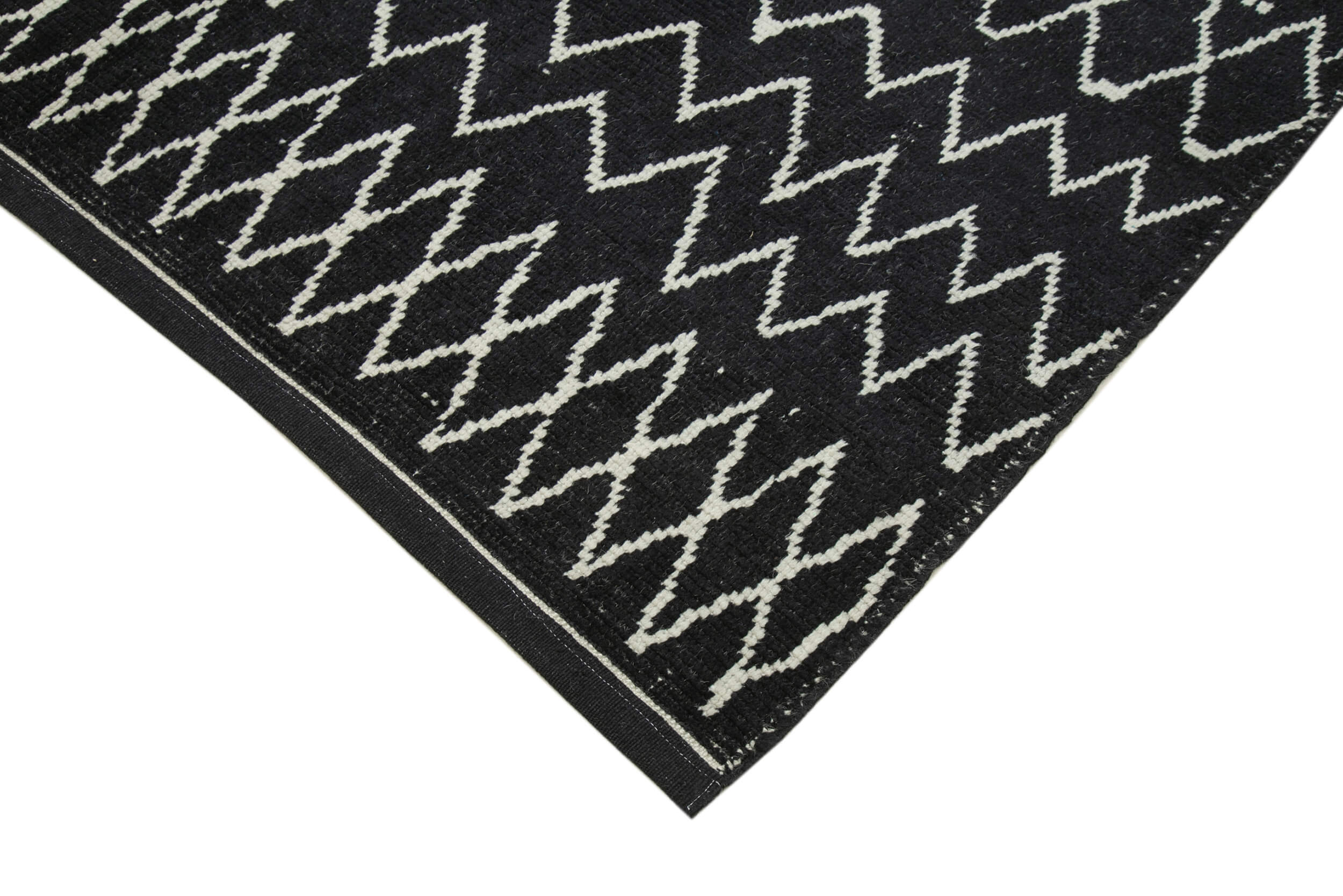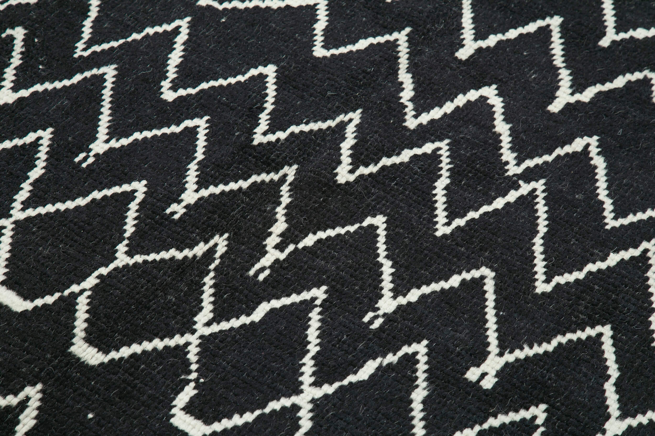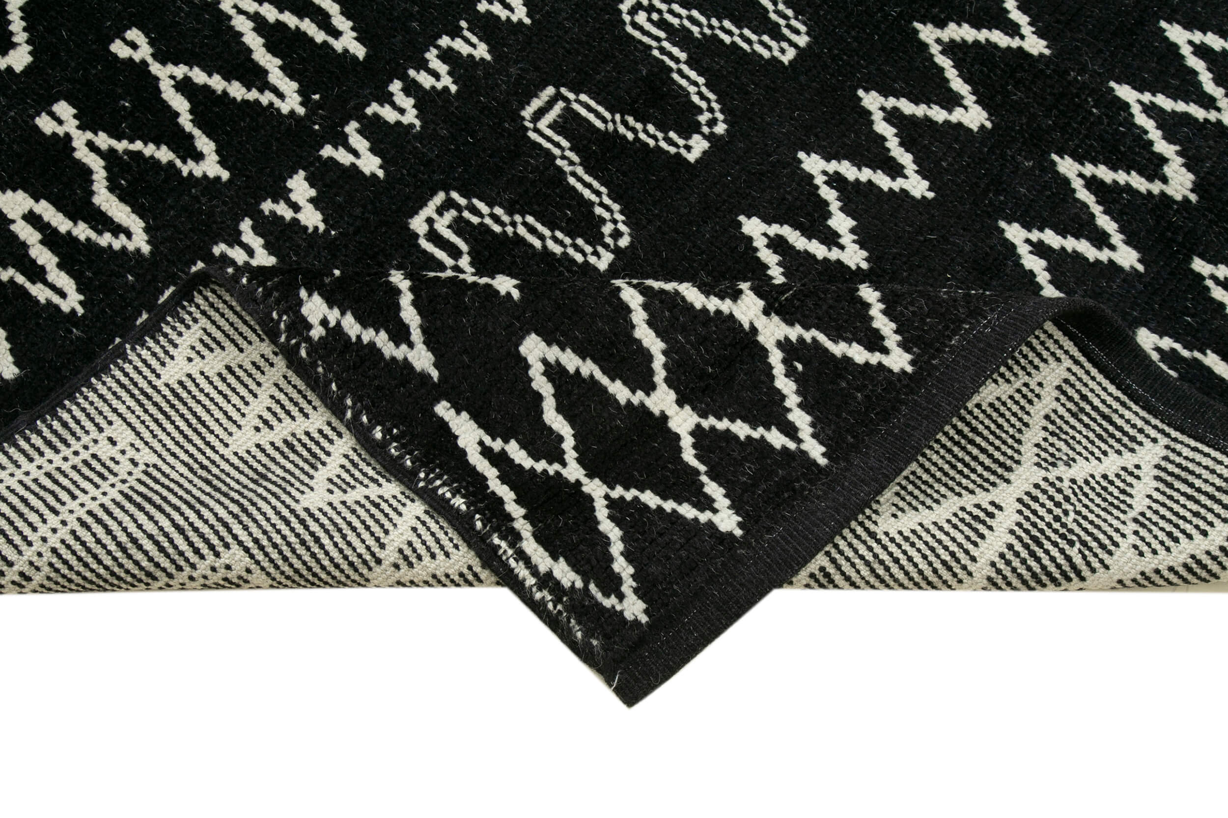 Purpleocco Black Geometric Wool Cotton Handmade Rug 6'1'' x 8'9''