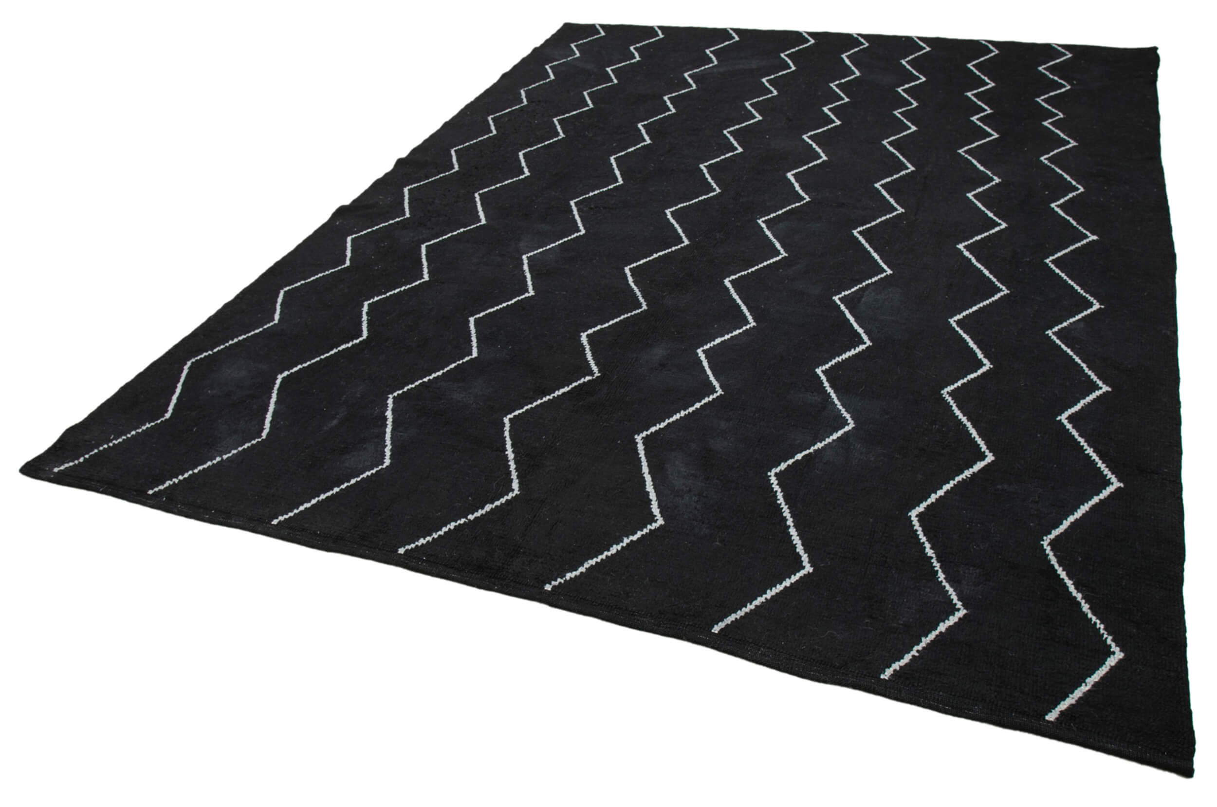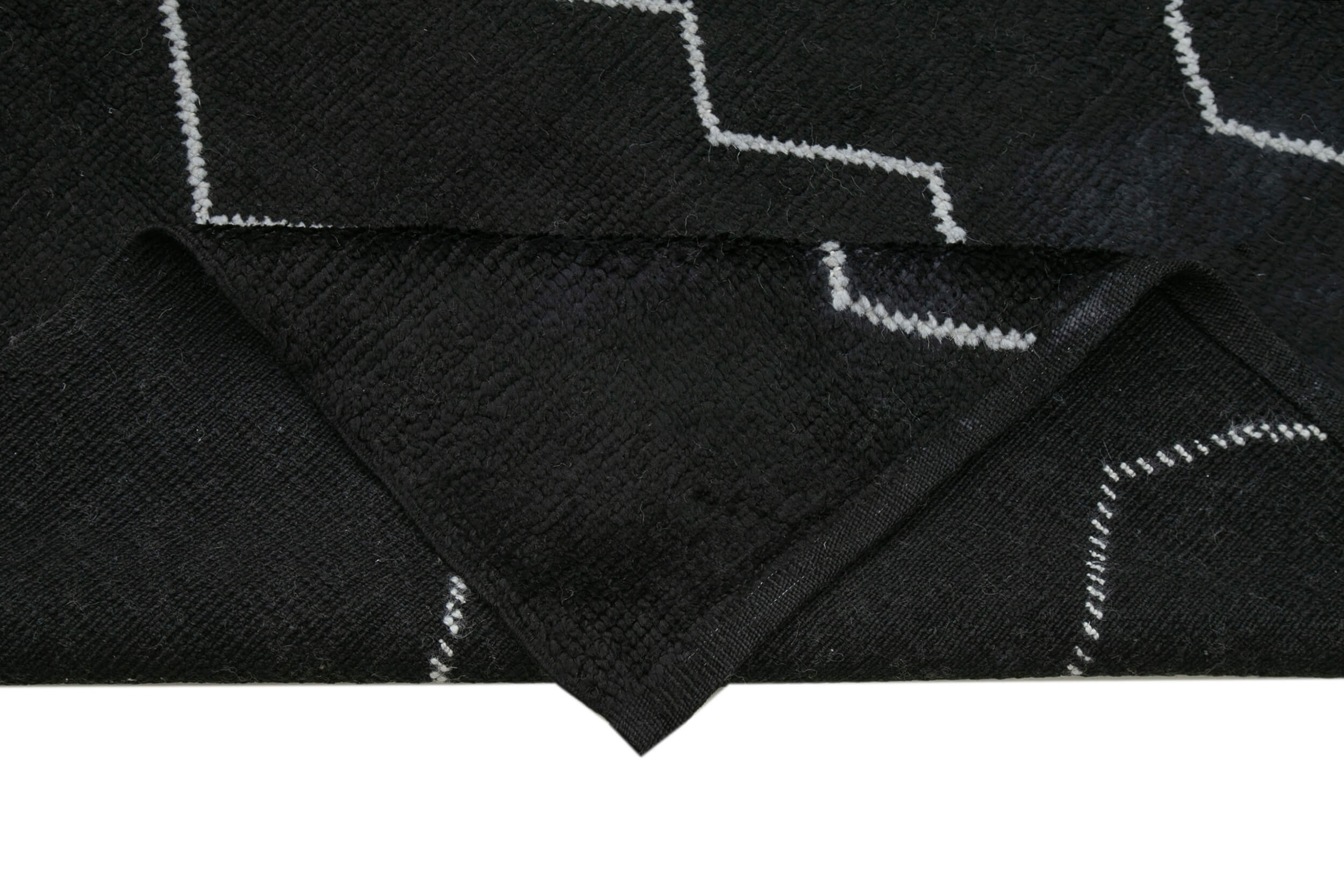 Purpleocco Black Geometric Wool Cotton Handmade Rug 7'9'' x 9'9''