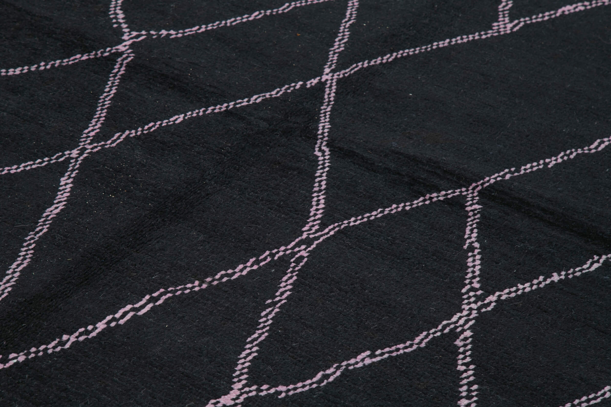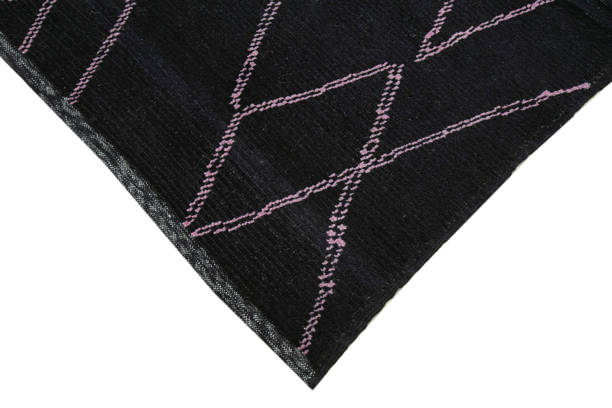 Purpleocco Black Geometric Wool Cotton Handmade Rug 8'11'' x 13'1''