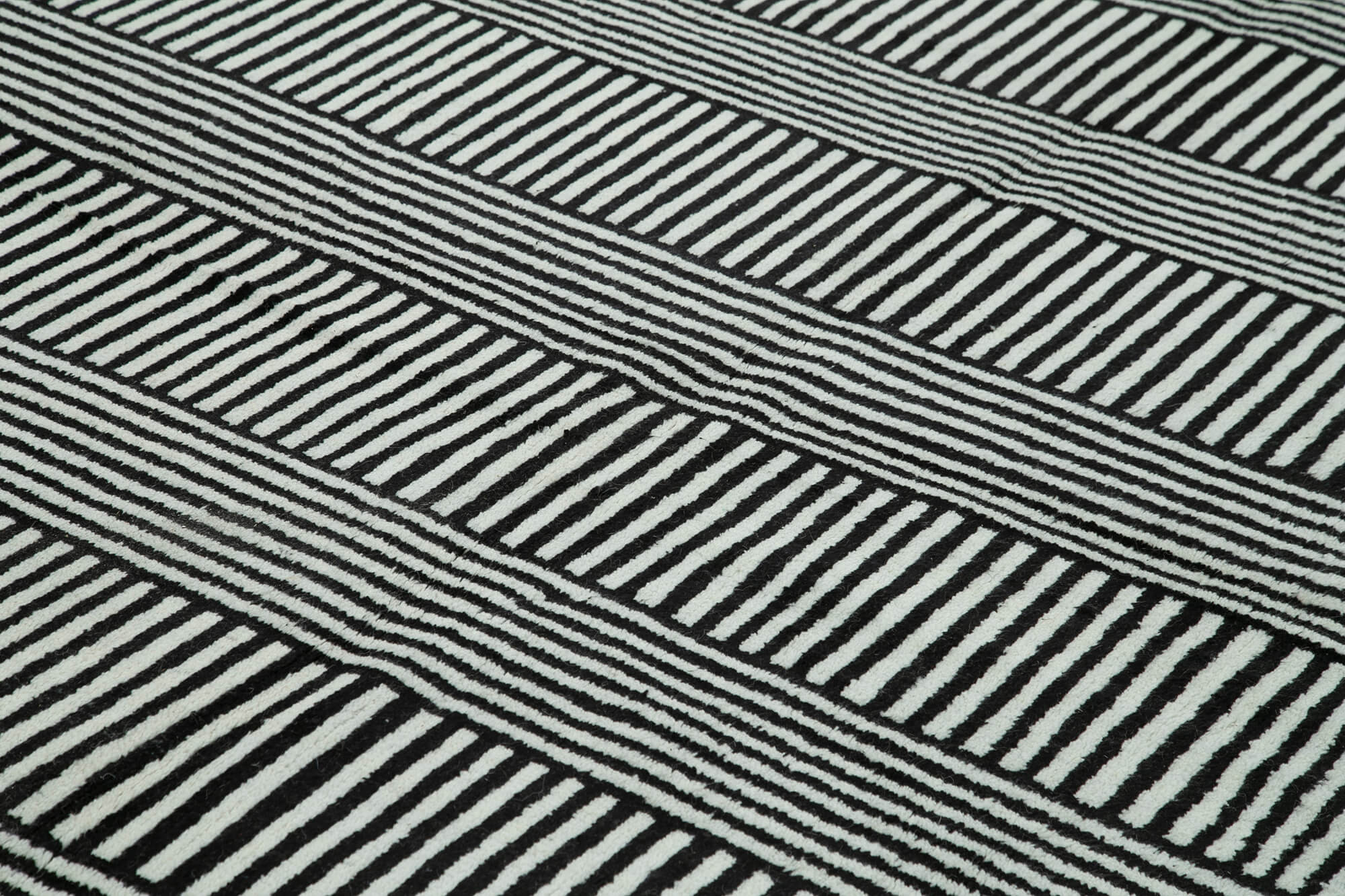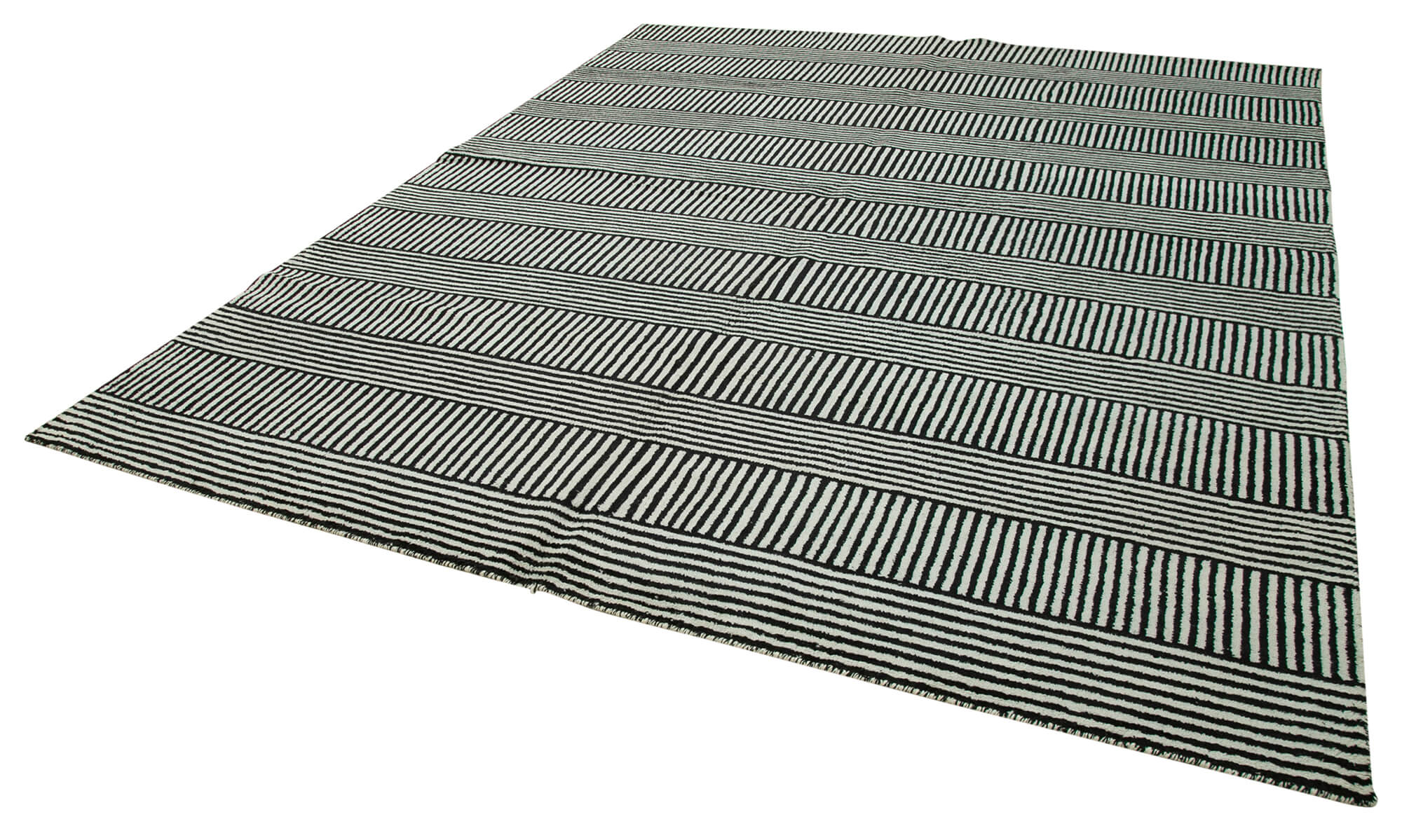 Purpleocco Black Geometric Wool Cotton Handmade Rug 9'1'' x 11'8''