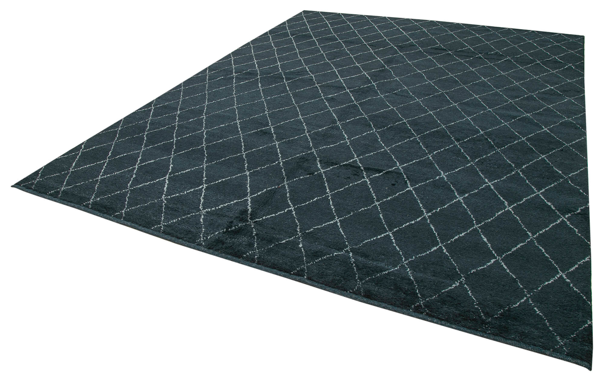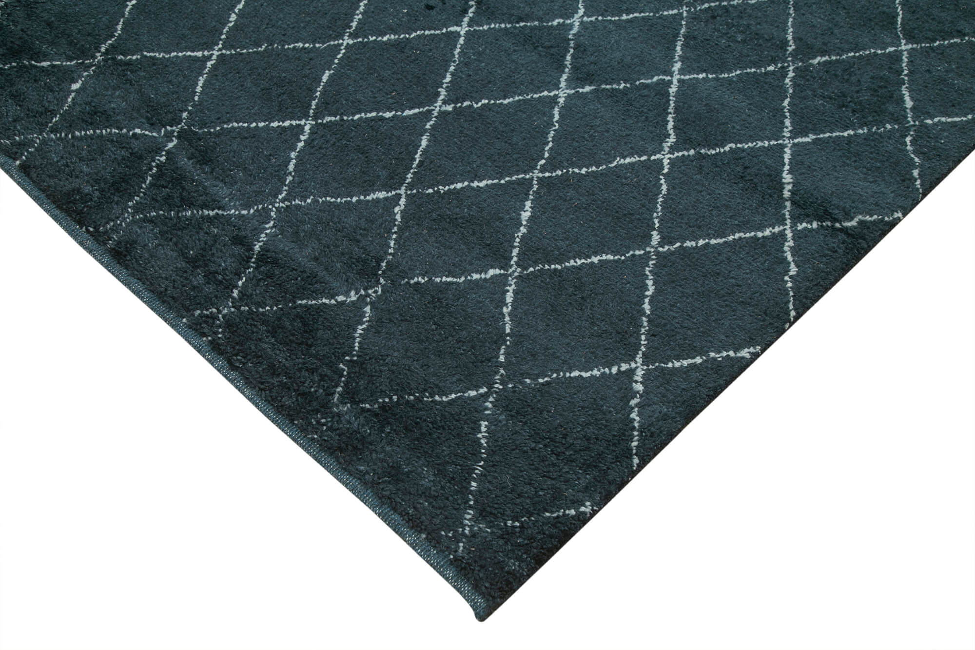 Purpleocco Black Geometric Wool Cotton Handmade Rug 9'1'' x 12'2''