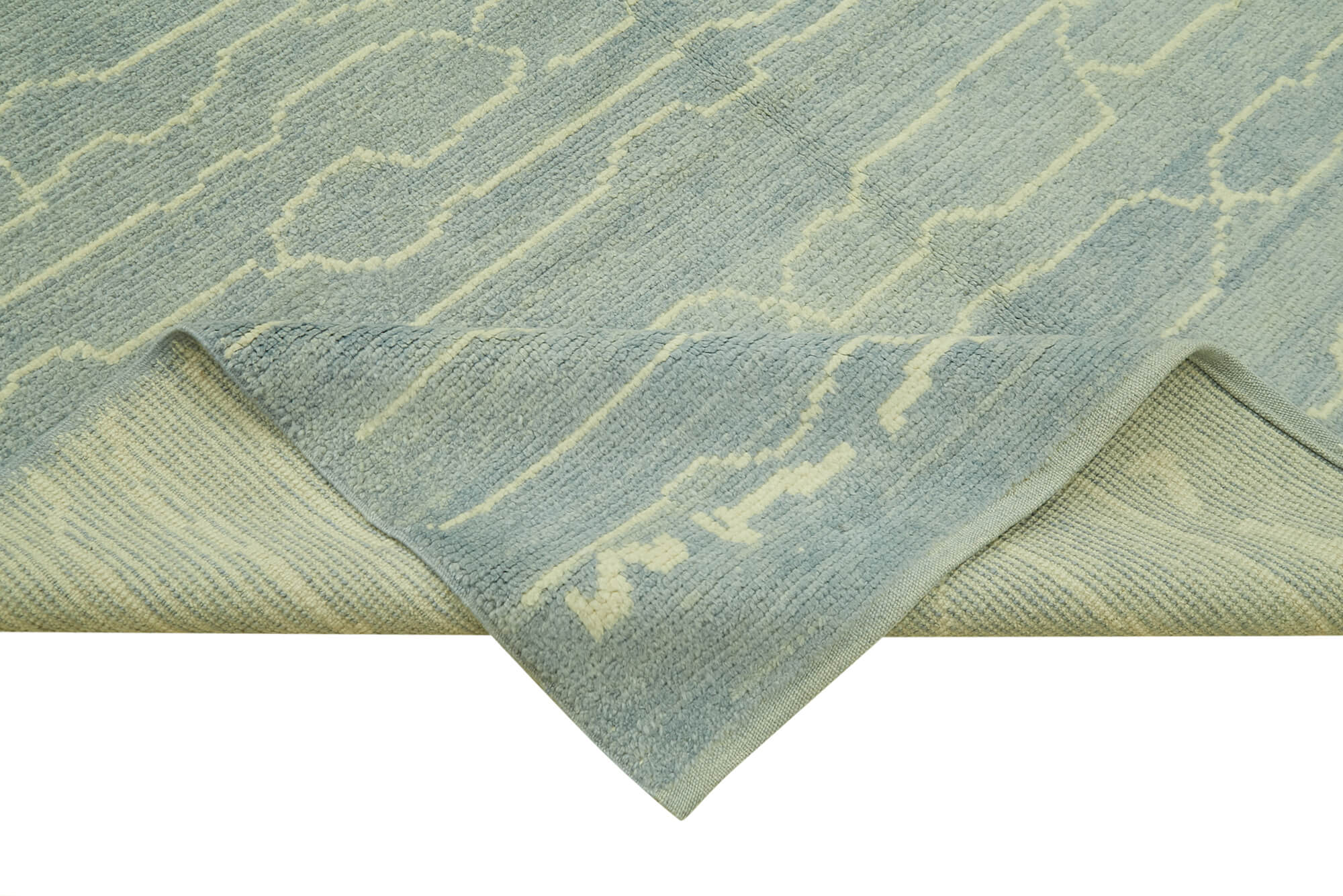 Purpleocco Blue Geometric Wool Cotton Handmade Rug 6'3'' x 9'10''