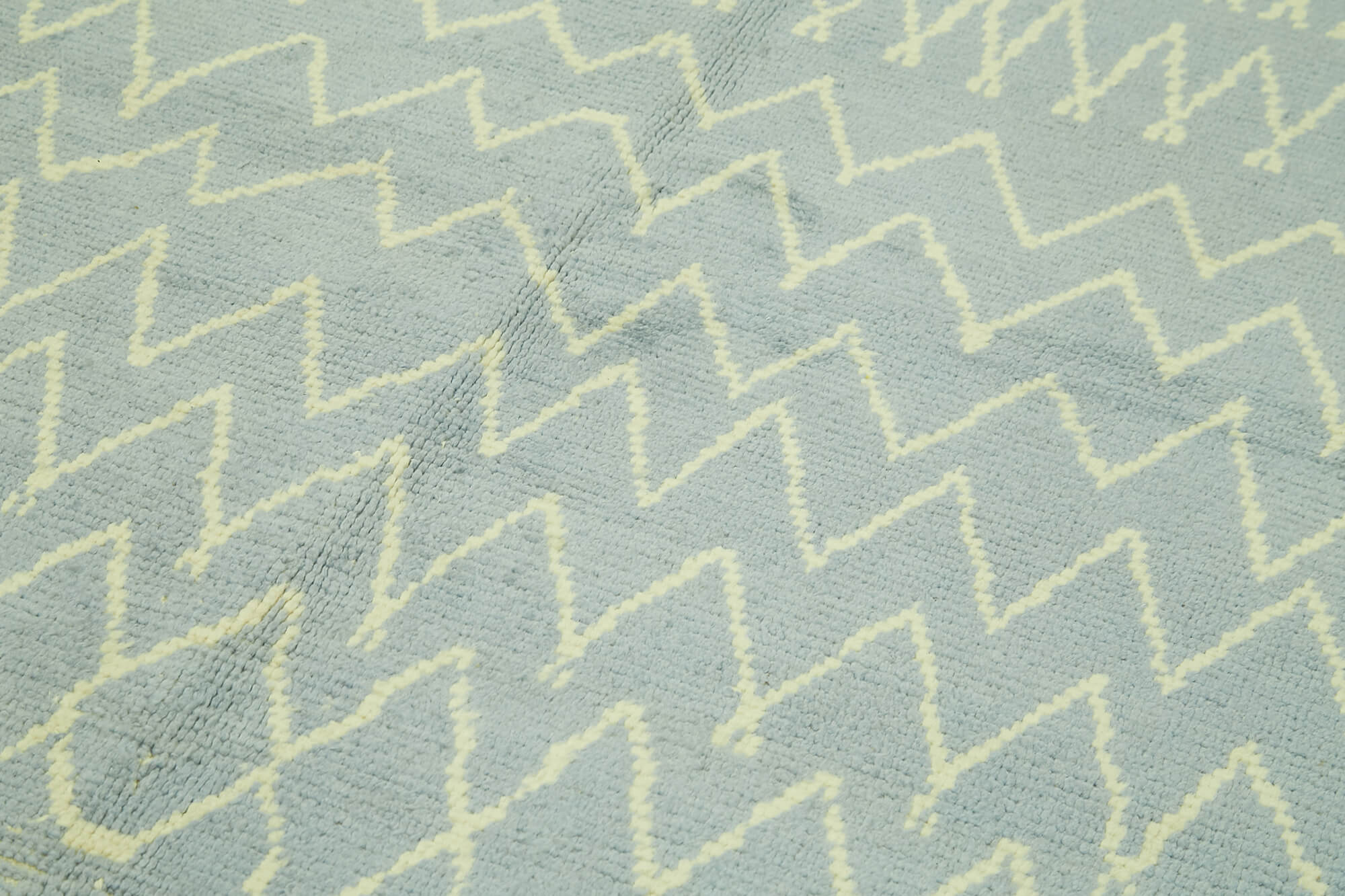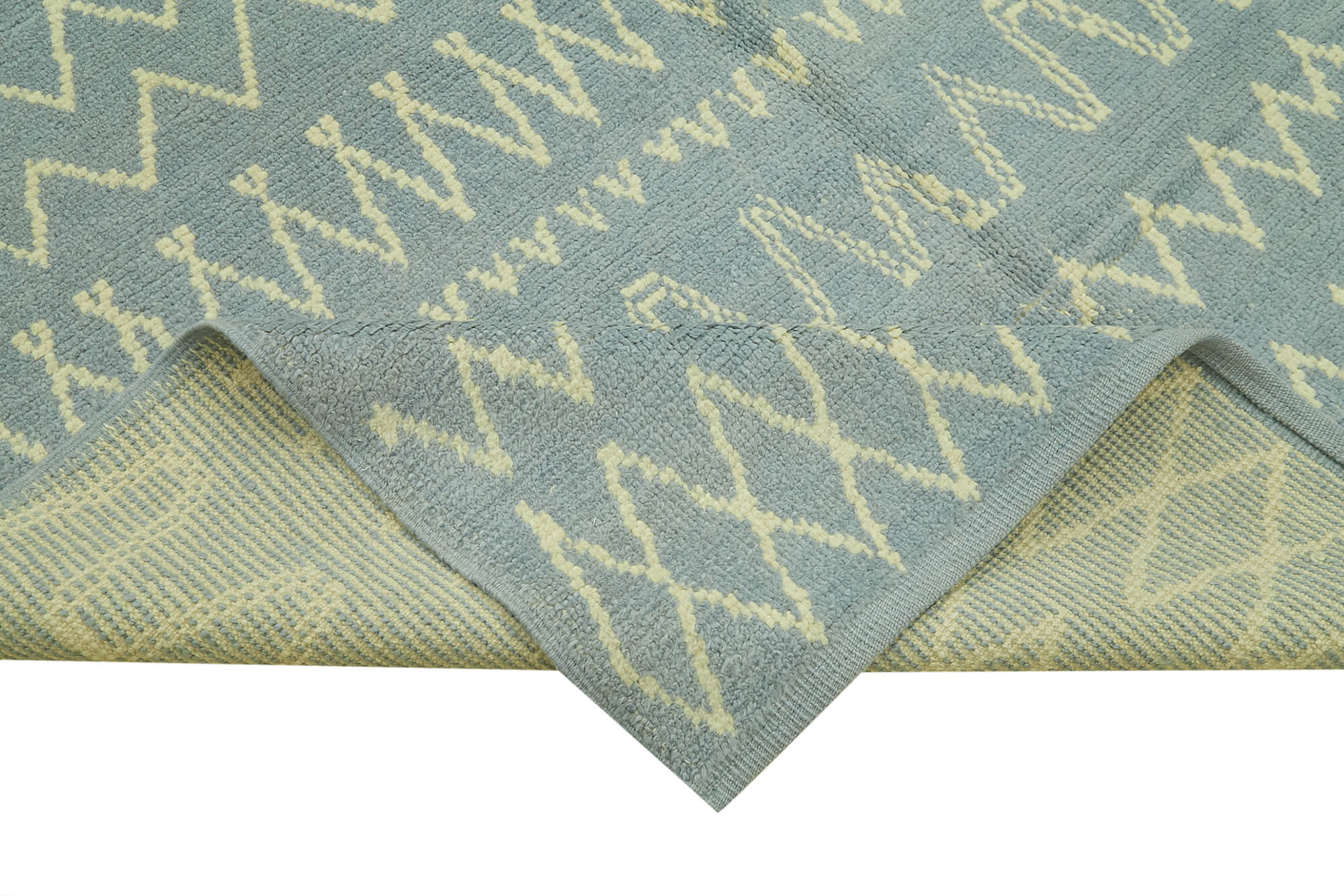 Purpleocco Blue Geometric Wool Cotton Handmade Rug 6'3'' x 9'6''