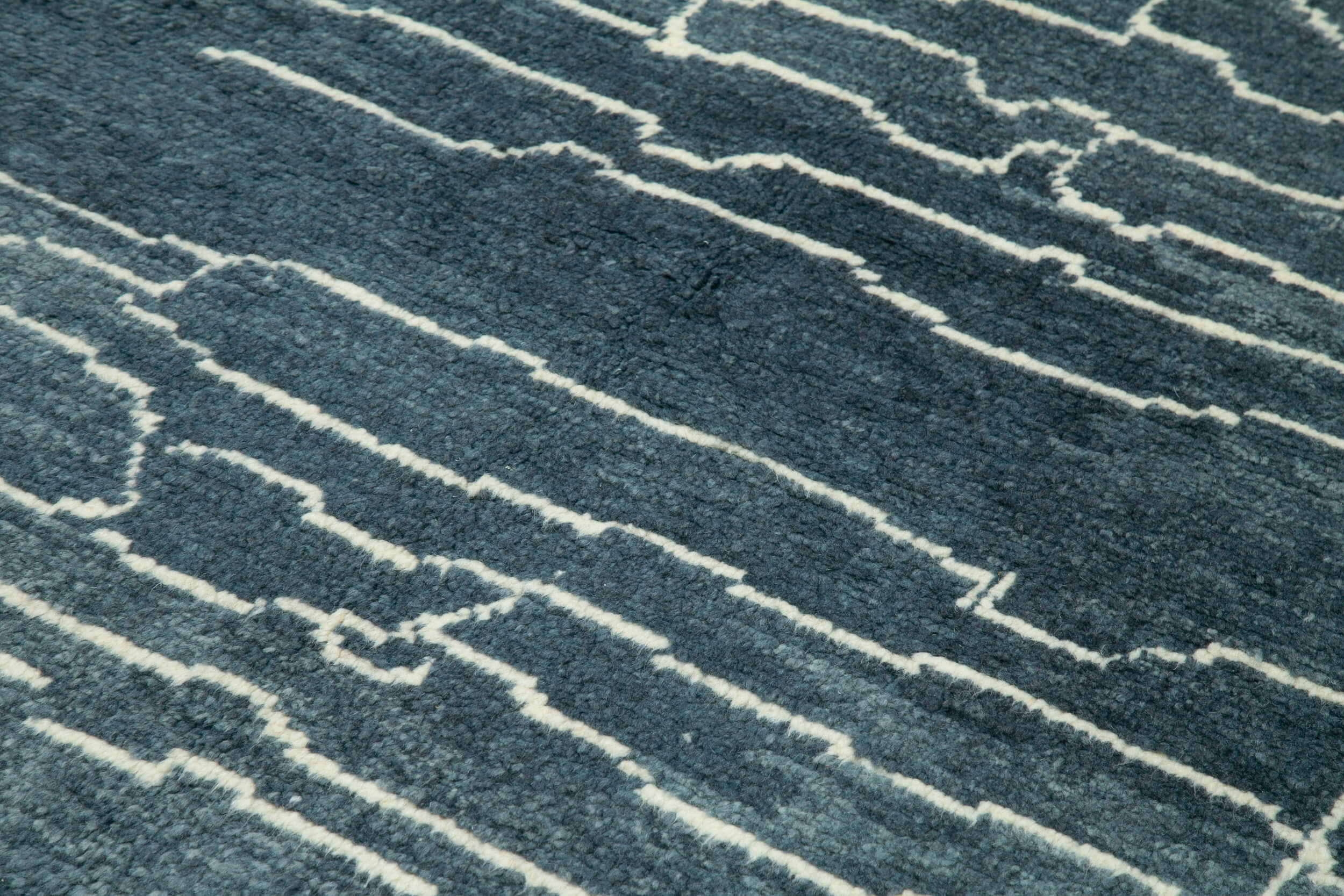 Purpleocco Blue Geometric Wool Cotton Handmade Rug 6'4'' x 9'2''