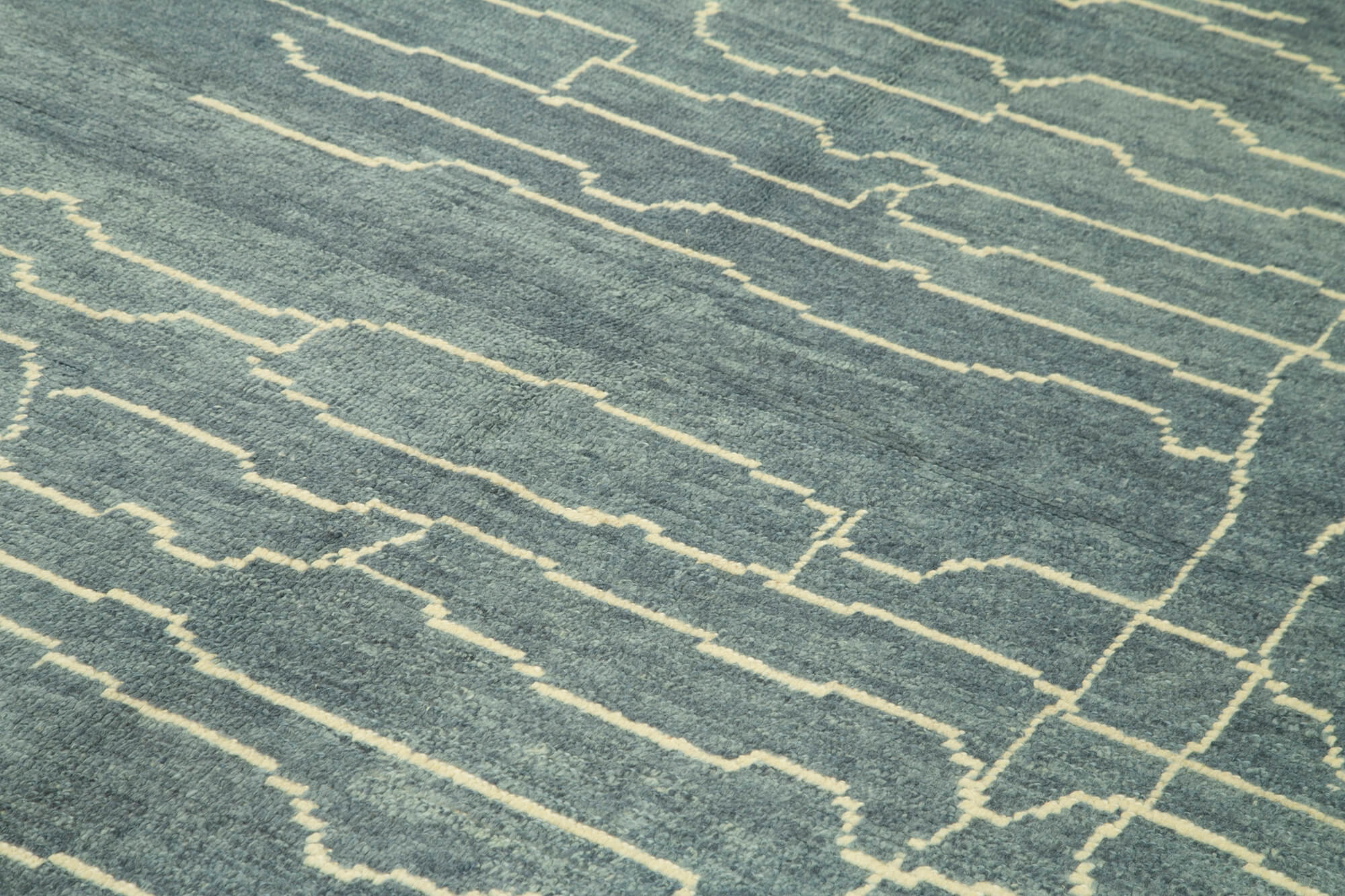 Purpleocco Blue Geometric Wool Cotton Handmade Rug 6'5'' x 10'3''