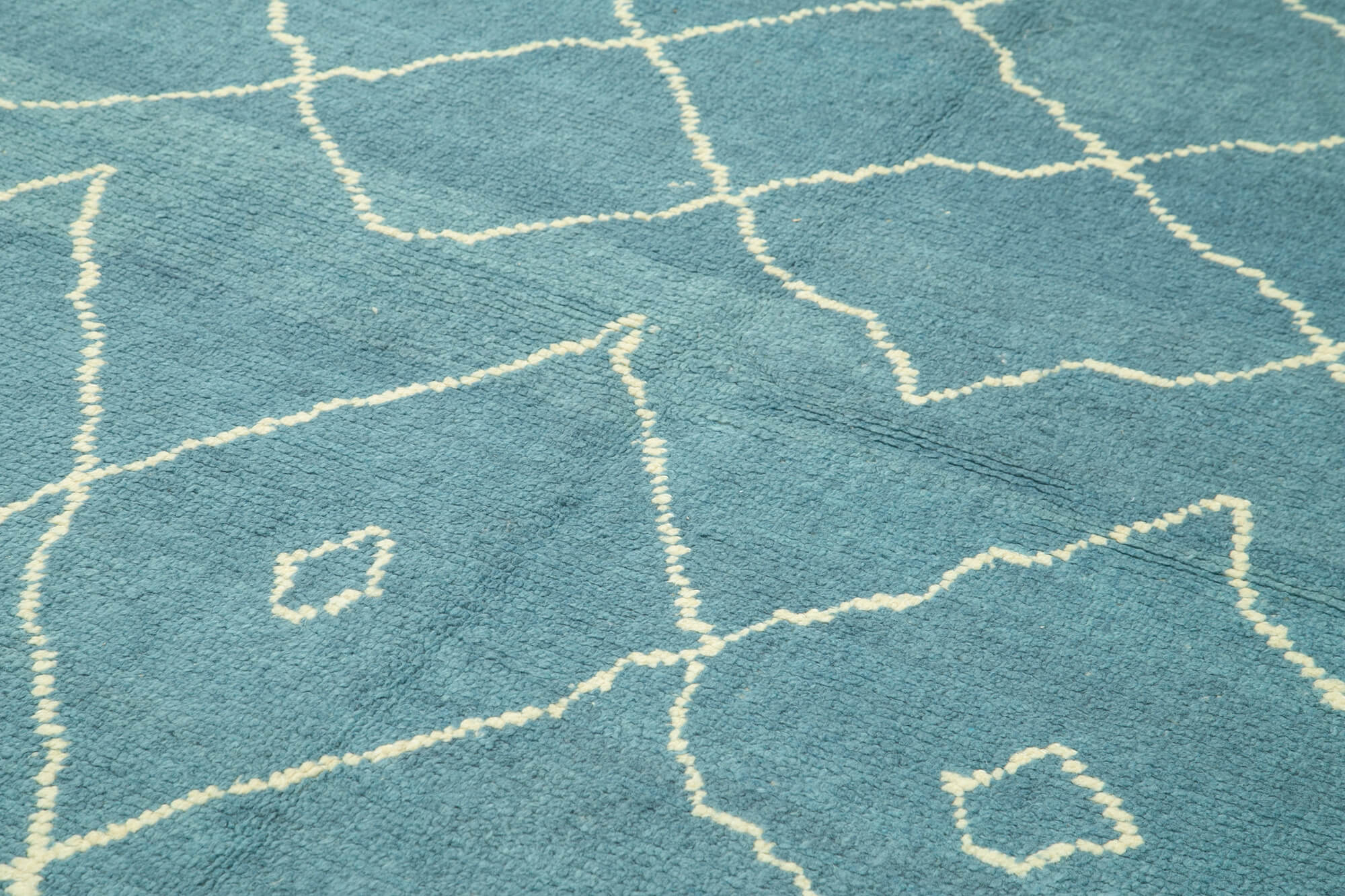 Purpleocco Blue Geometric Wool Cotton Handmade Rug 6'6'' x 9'11''
